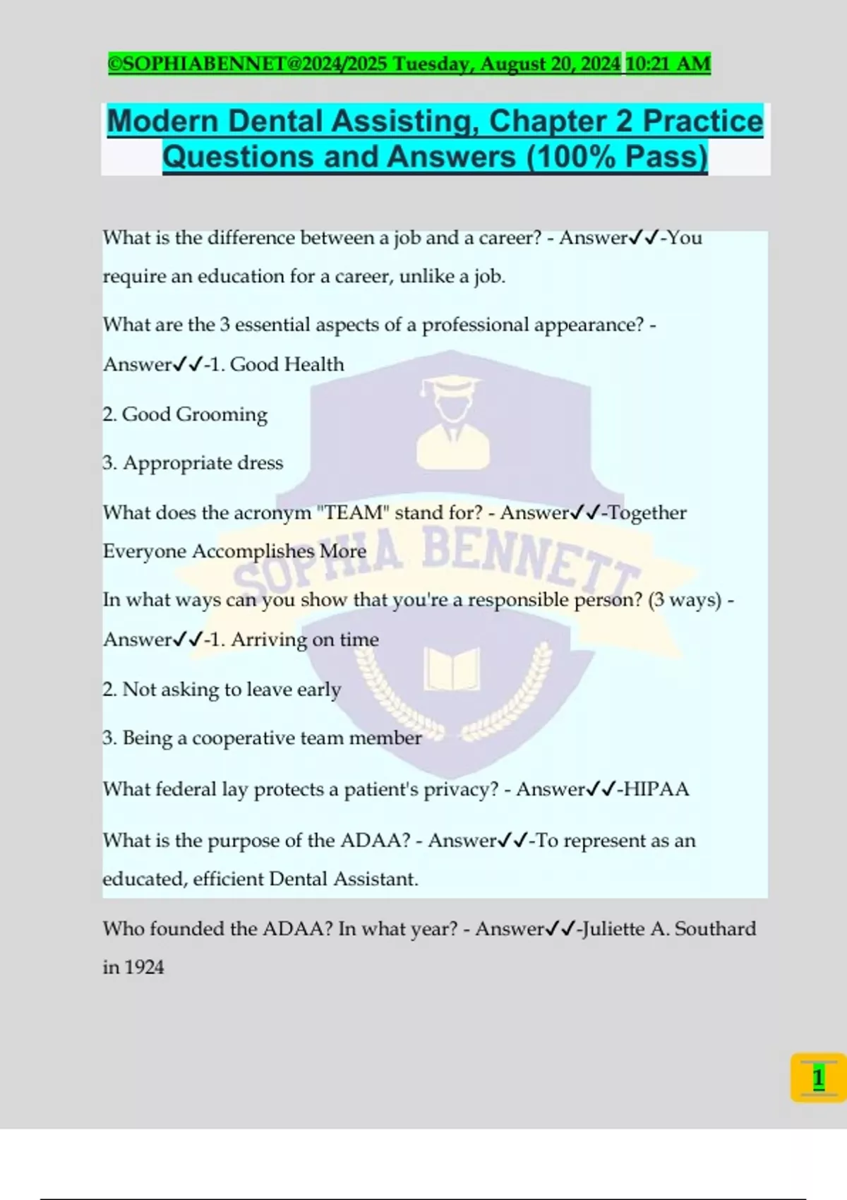 Questions and Answers (100% Pass)