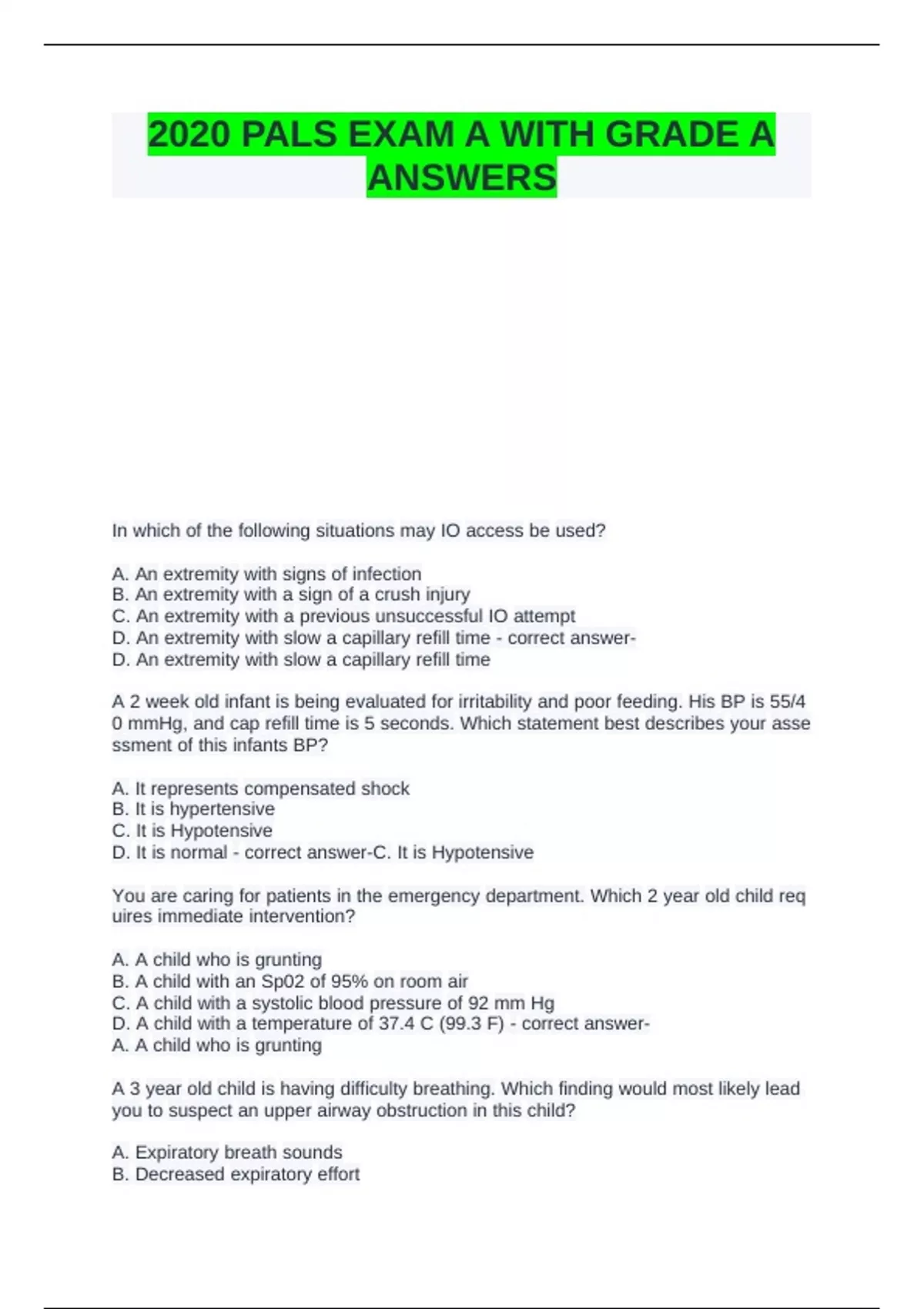 AC3CyearColdCchildCisChavingCdifficultyCbreathing.CWhichCfindingCwouldCmostClikelyCleadC