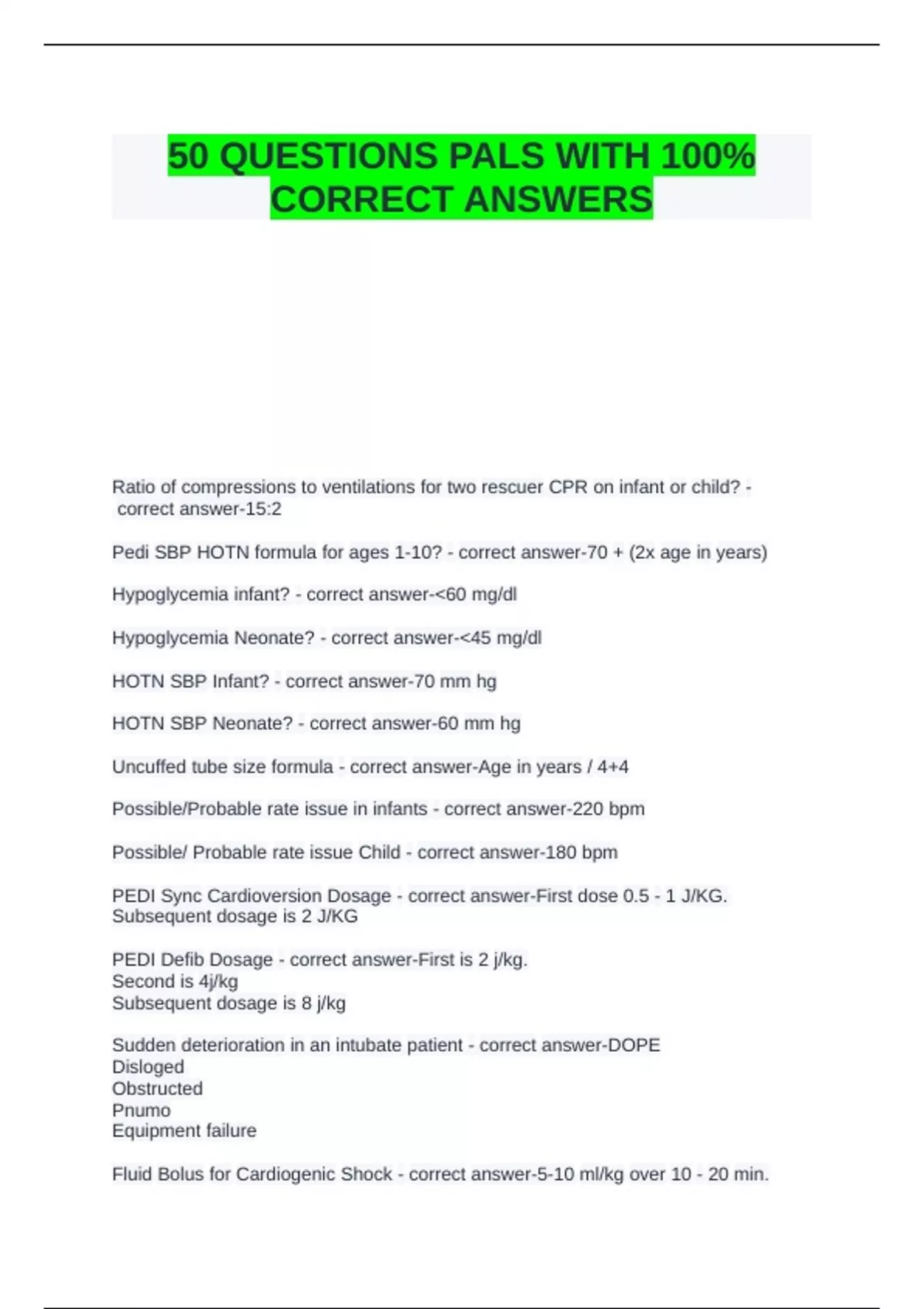 50 QUESTIONS PALS WITH 100%