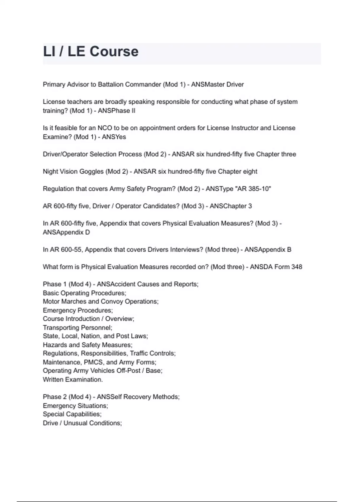 AR 600-fifty five, Driver / Operator Candidates? (Mod 3) - ANSChapter 3