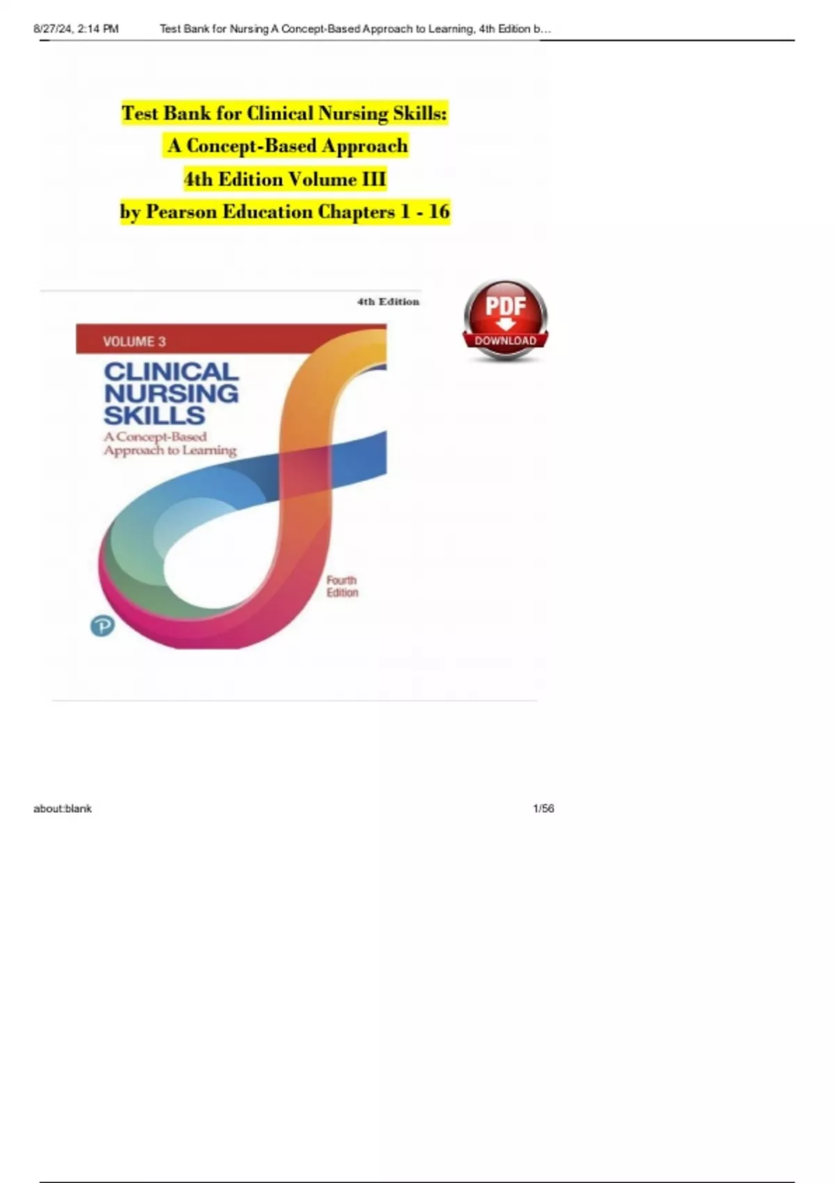 , 8/27/24, 2:14 PM Test Bank for Nursing A Concept-Based Approach to Learning, 4th Edition b…