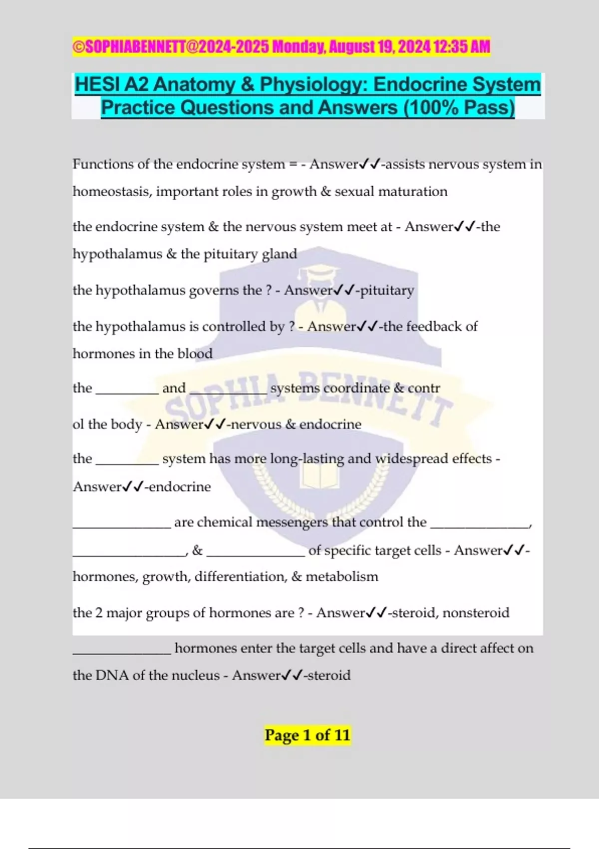 Functions of the endocrine system = - Answer✔️✔️-assists nervous system in