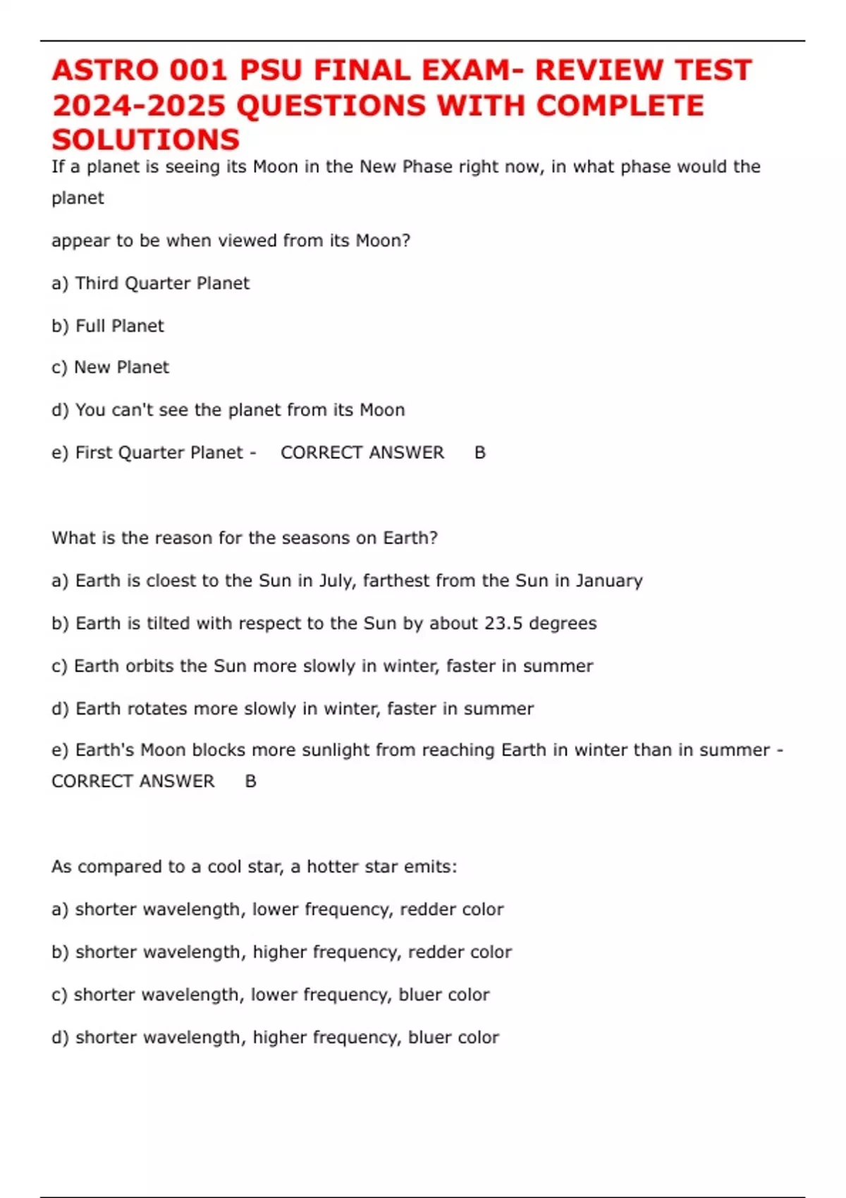 ASTRO 001 PSU FINAL EXAM- REVIEW TEST QUESTIONS WITH COMPLETE SOLUTIONS ASTRO 001 PSU FINAL EXAM- REVIEW TEST QUESTIONS WITH COMPLETE SOLUTIONS