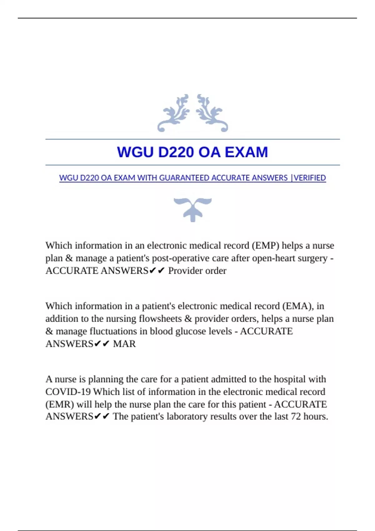 WGU D220 OA EXAM WITH GUARANTEED ACCURATE ANSWERS |VERIFIED