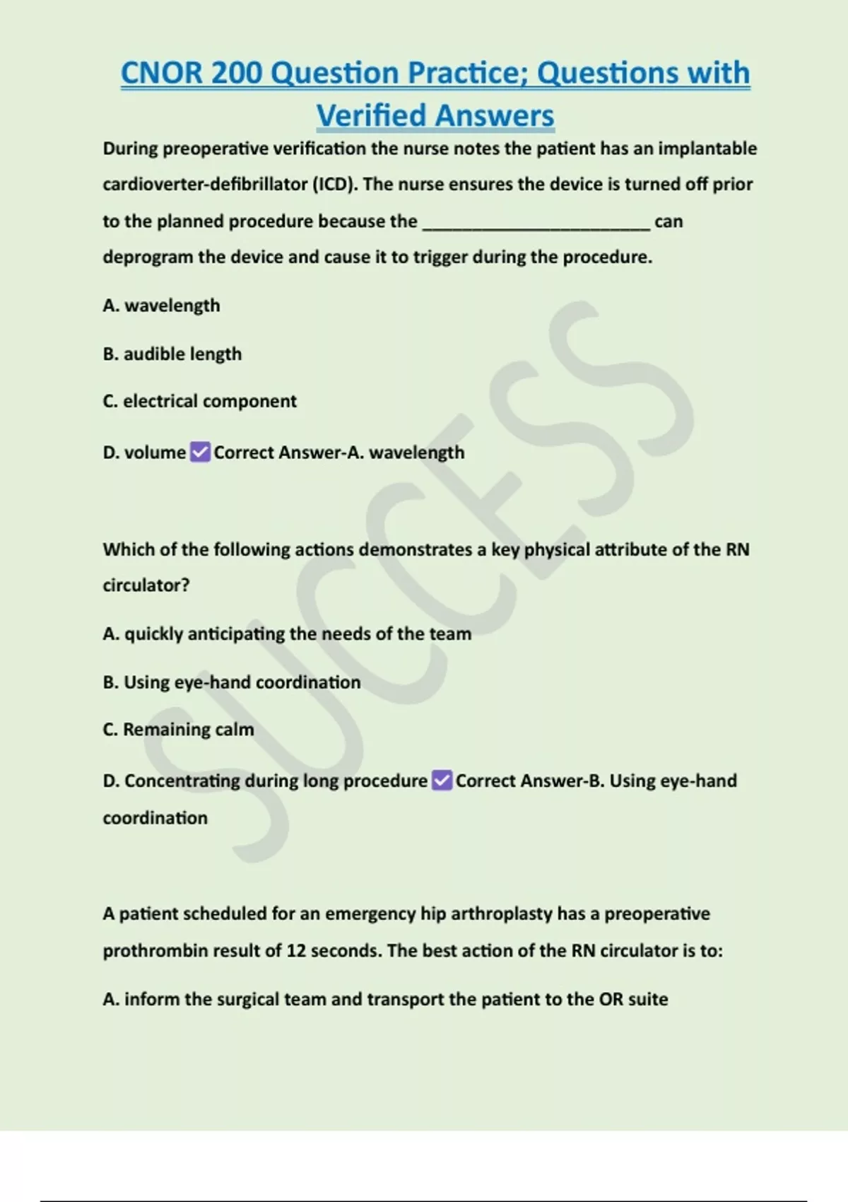 , CNOR 200 Question Practice; Questions with
