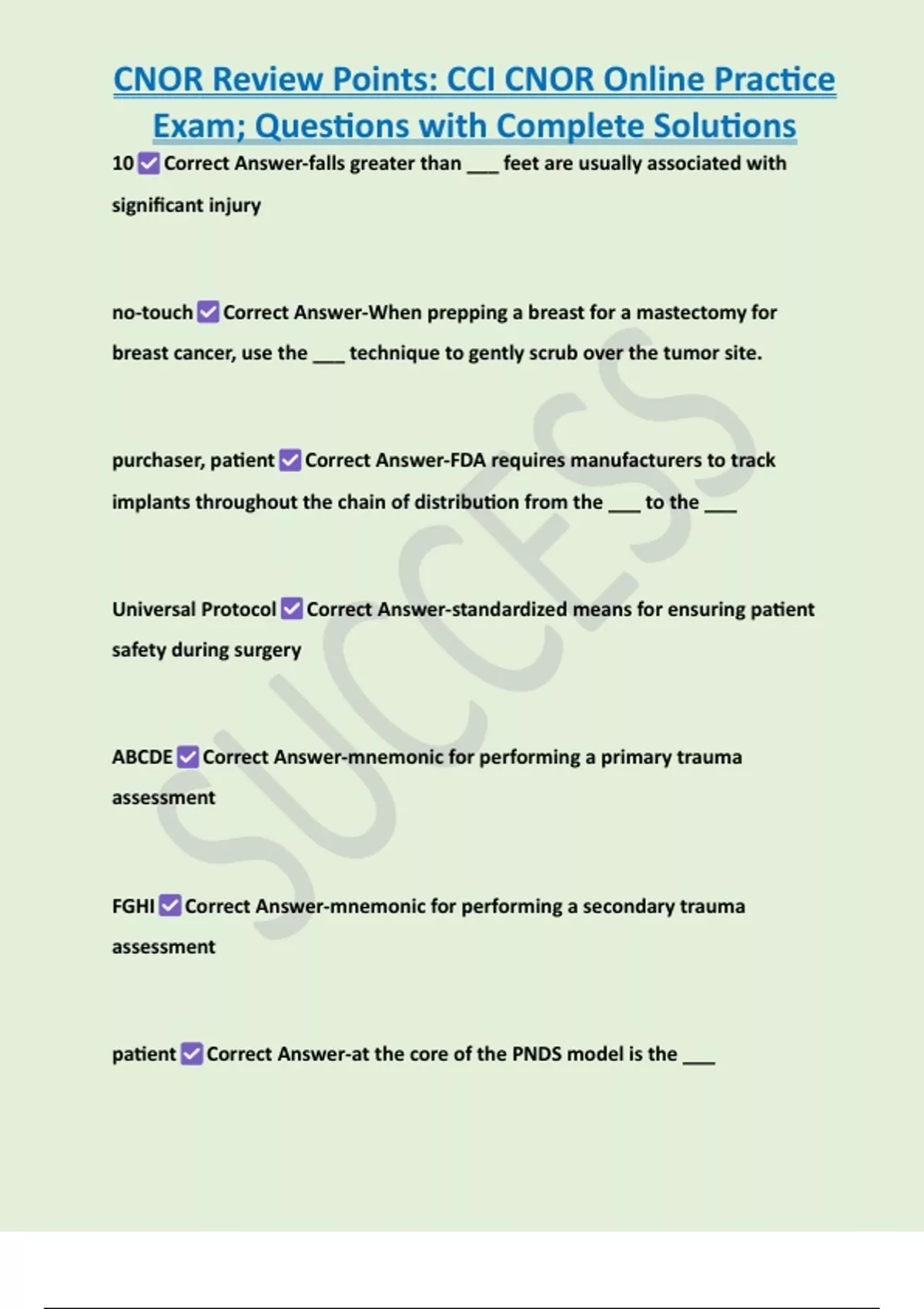 , CNOR Review Points: CCI CNOR Online Practice