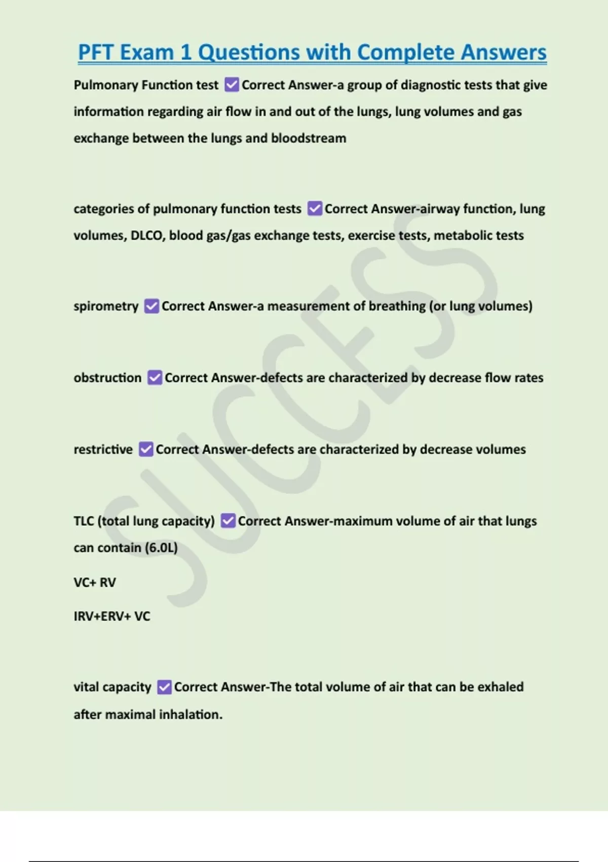 TLC (total lung capacity) Correct Answer-maximum volume of air that lungs