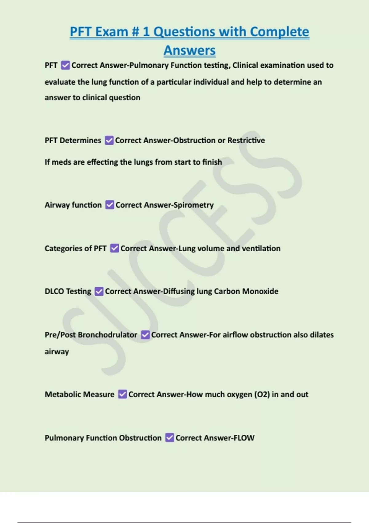PFT Correct Answer-Pulmonary Function testing, Clinical examination used to