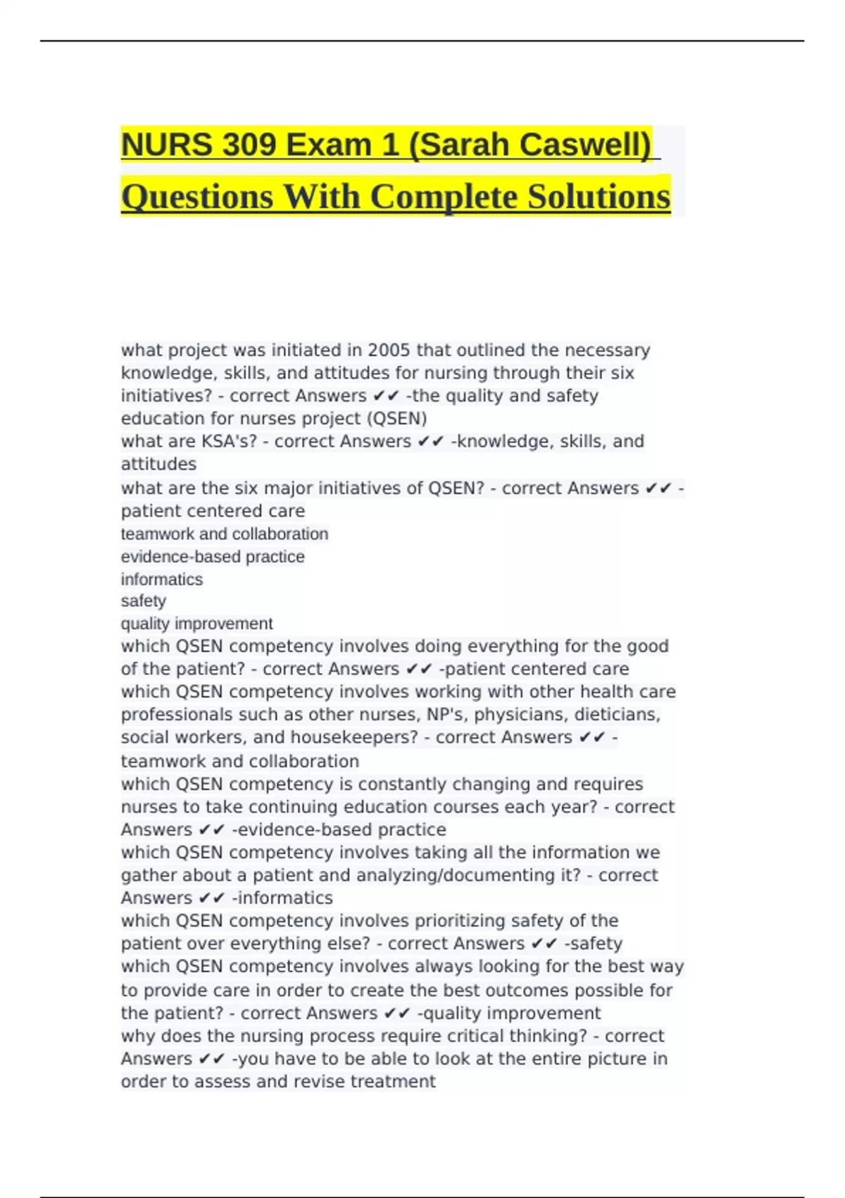 what are the six major initiatives of QSEN? - correct Answers ✔✔ -