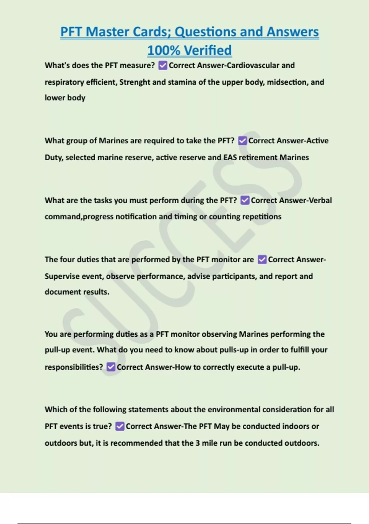PFT events is true? Correct Answer-The PFT May be conducted indoors or