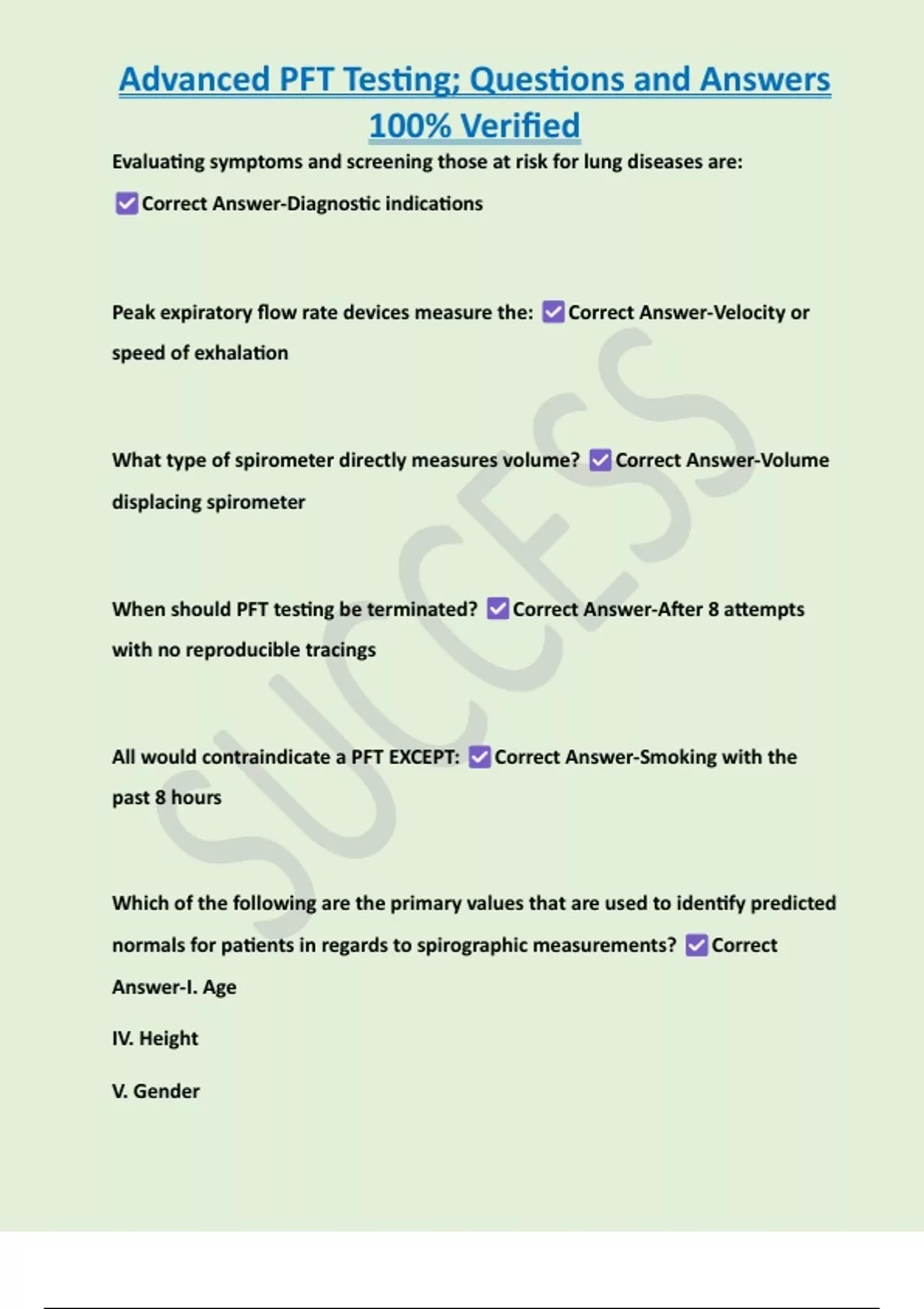 , Advanced PFT Testing; Questions and Answers