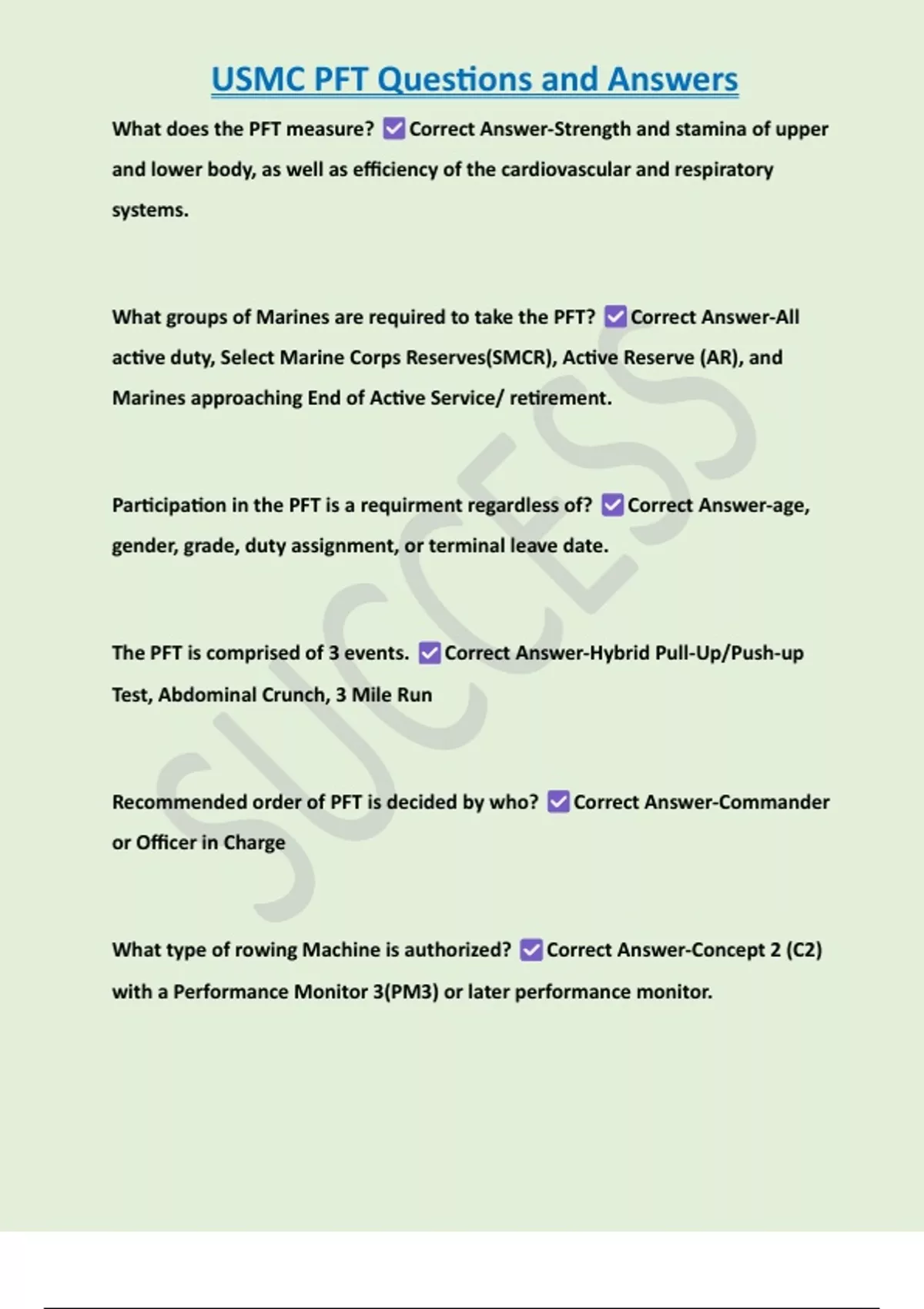 , USMC PFT Questions and Answers