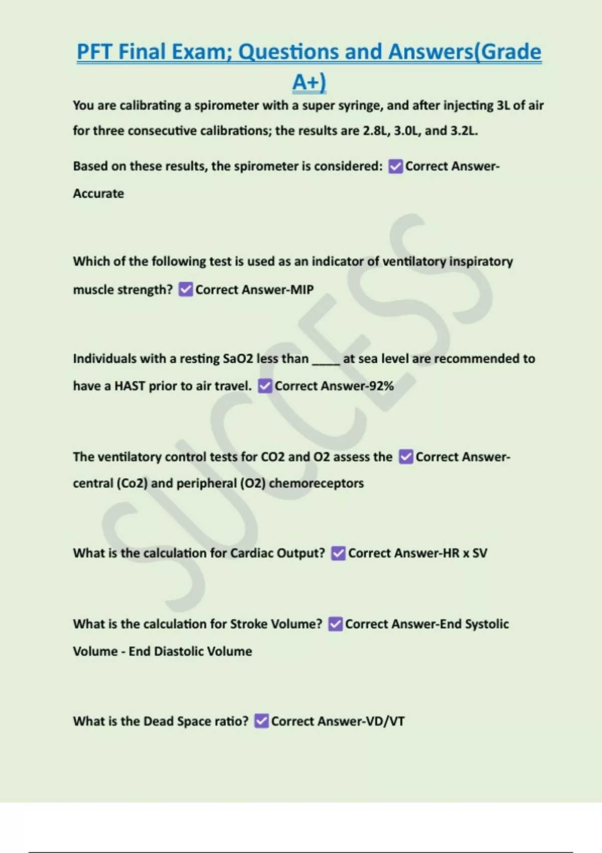 , PFT Final Exam; Questions and Answers(Grade