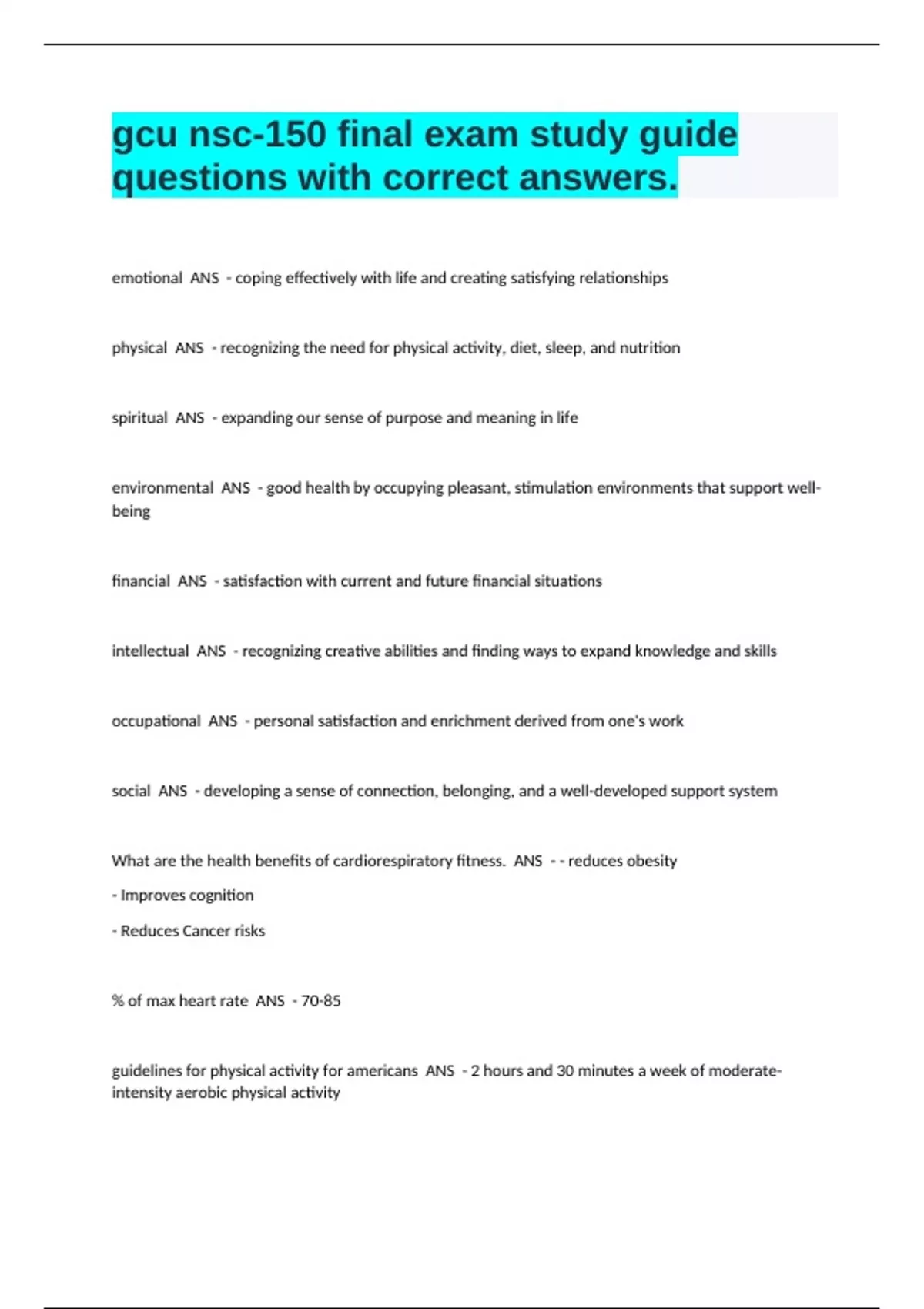 What are the health benefits of cardiorespiratory fitness. ANS - - reduces obesity