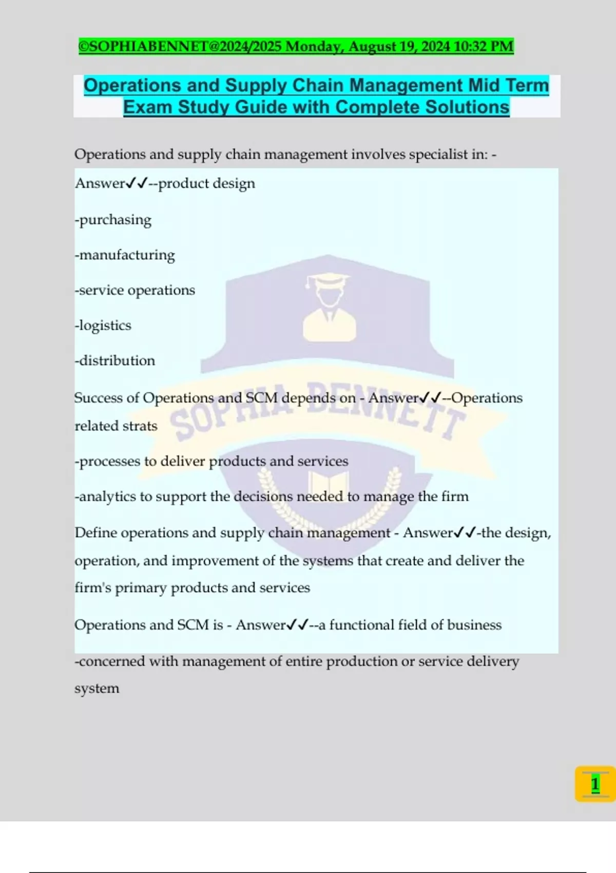 Operations and Supply Chain Management Mid Term