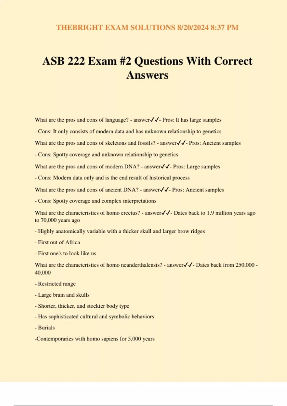 ASB 222 Exam #2 Questions With Correct