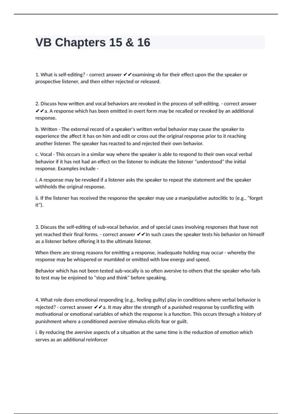 1. What is self-editing? - correct answer ✔✔examining vb for their effect upon the the speaker or