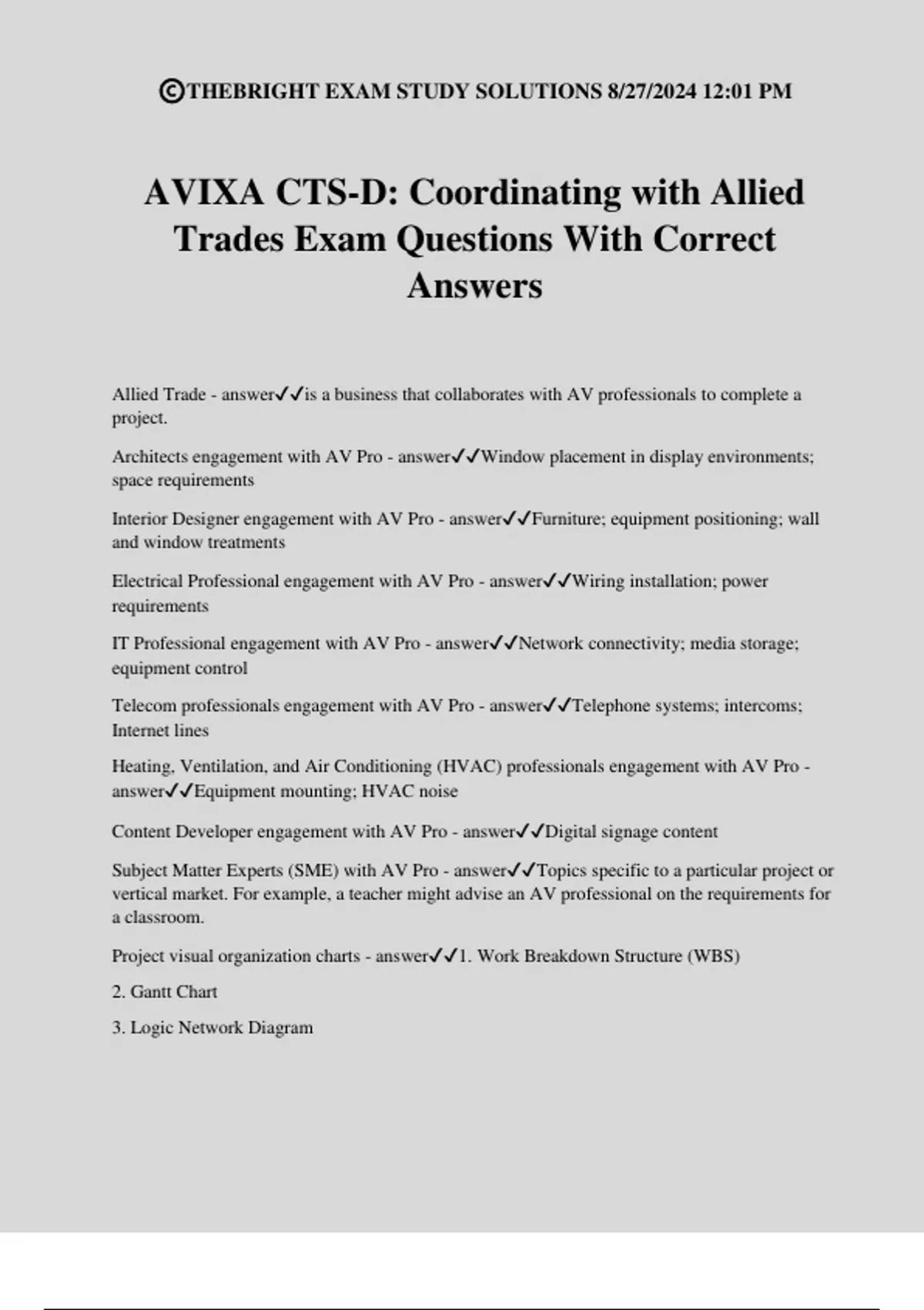 Allied Trade - answer✔✔is a business that collaborates with AV professionals to complete a