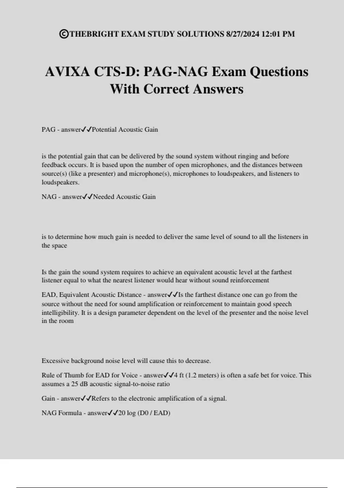 NAG Formula - answer✔✔20 log (D0 / EAD)