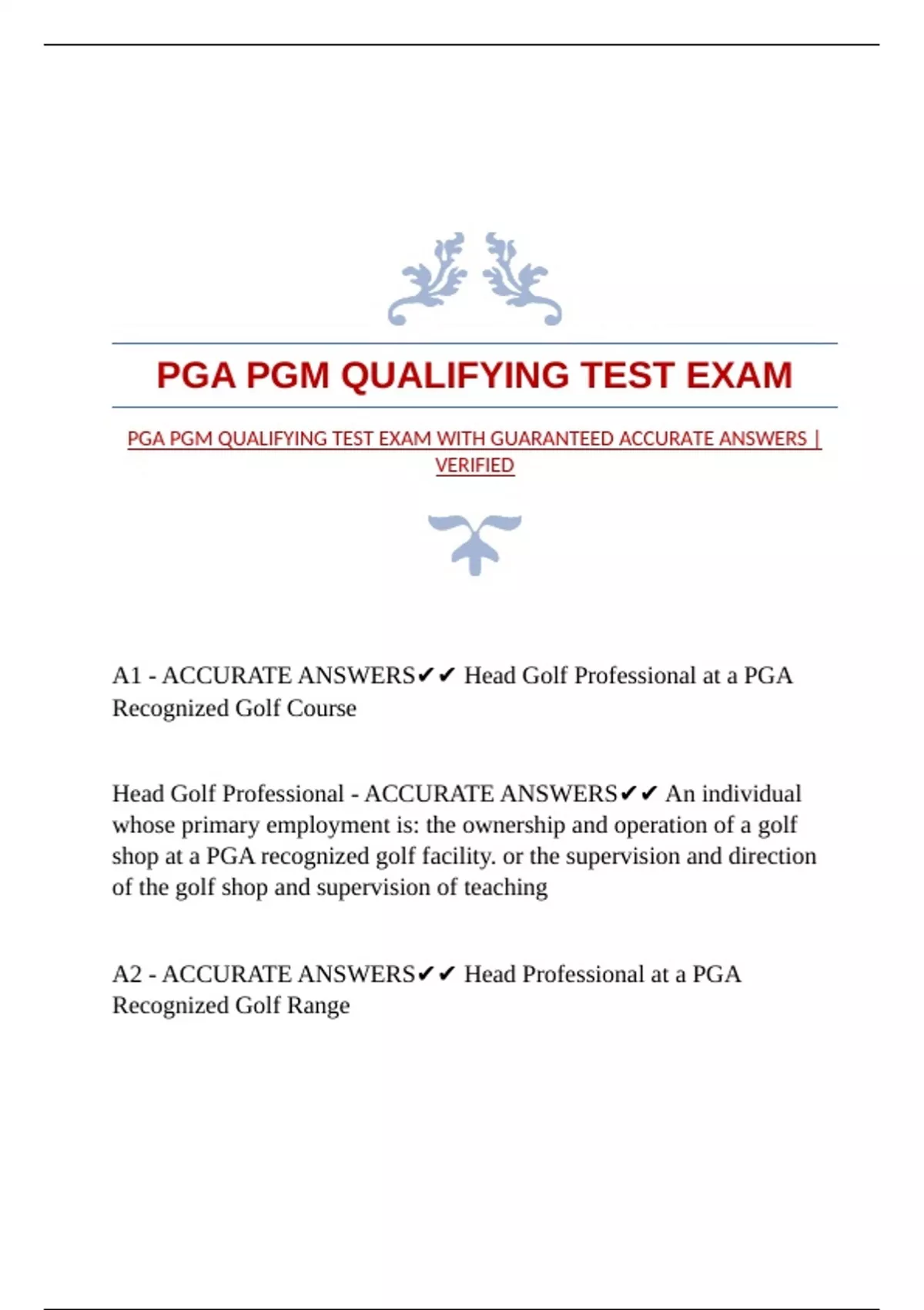 PGA PGM QUALIFYING TEST EXAM WITH GUARANTEED ACCURATE ANSWERS |