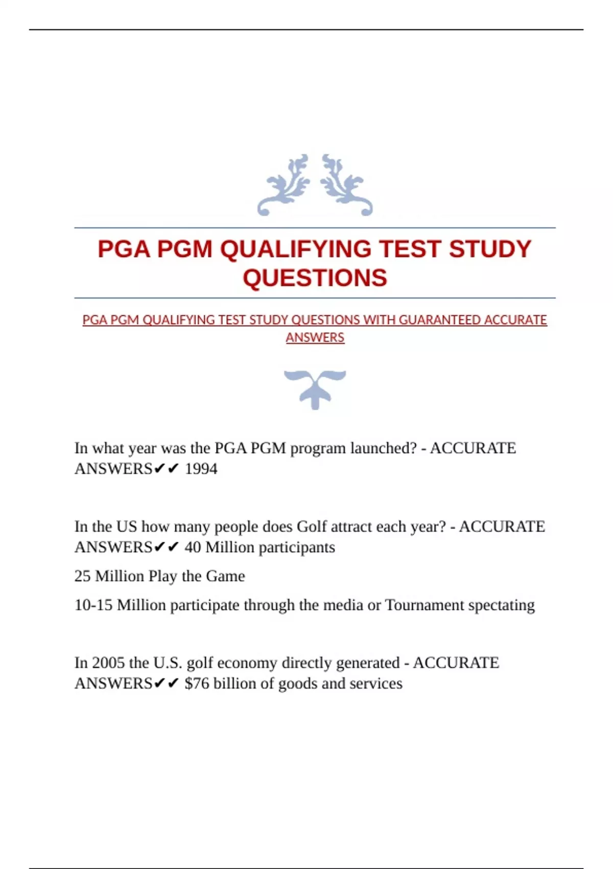 PGA PGM QUALIFYING TEST STUDY QUESTIONS WITH GUARANTEED ACCURATE