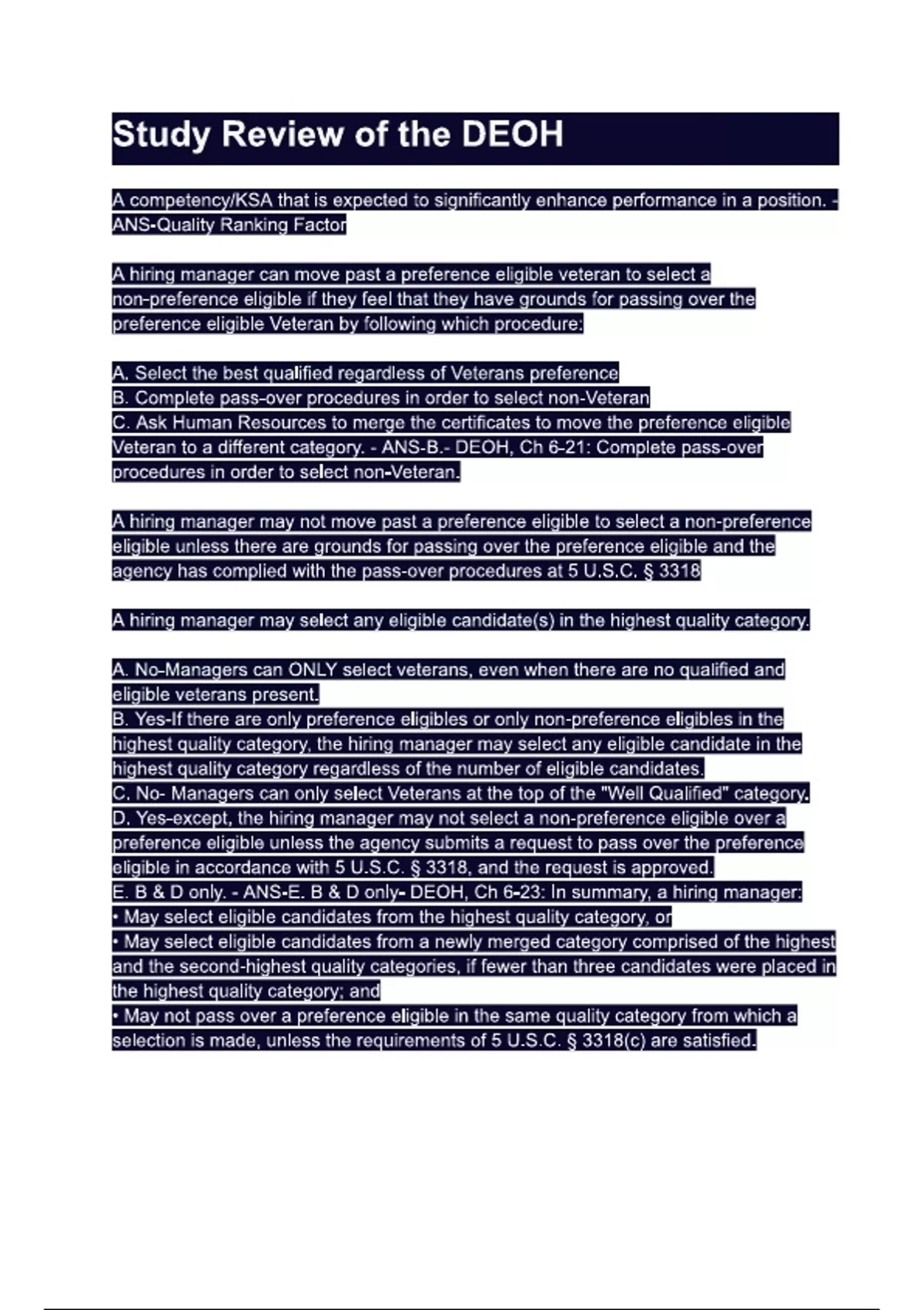 Study Review of the DEOH.