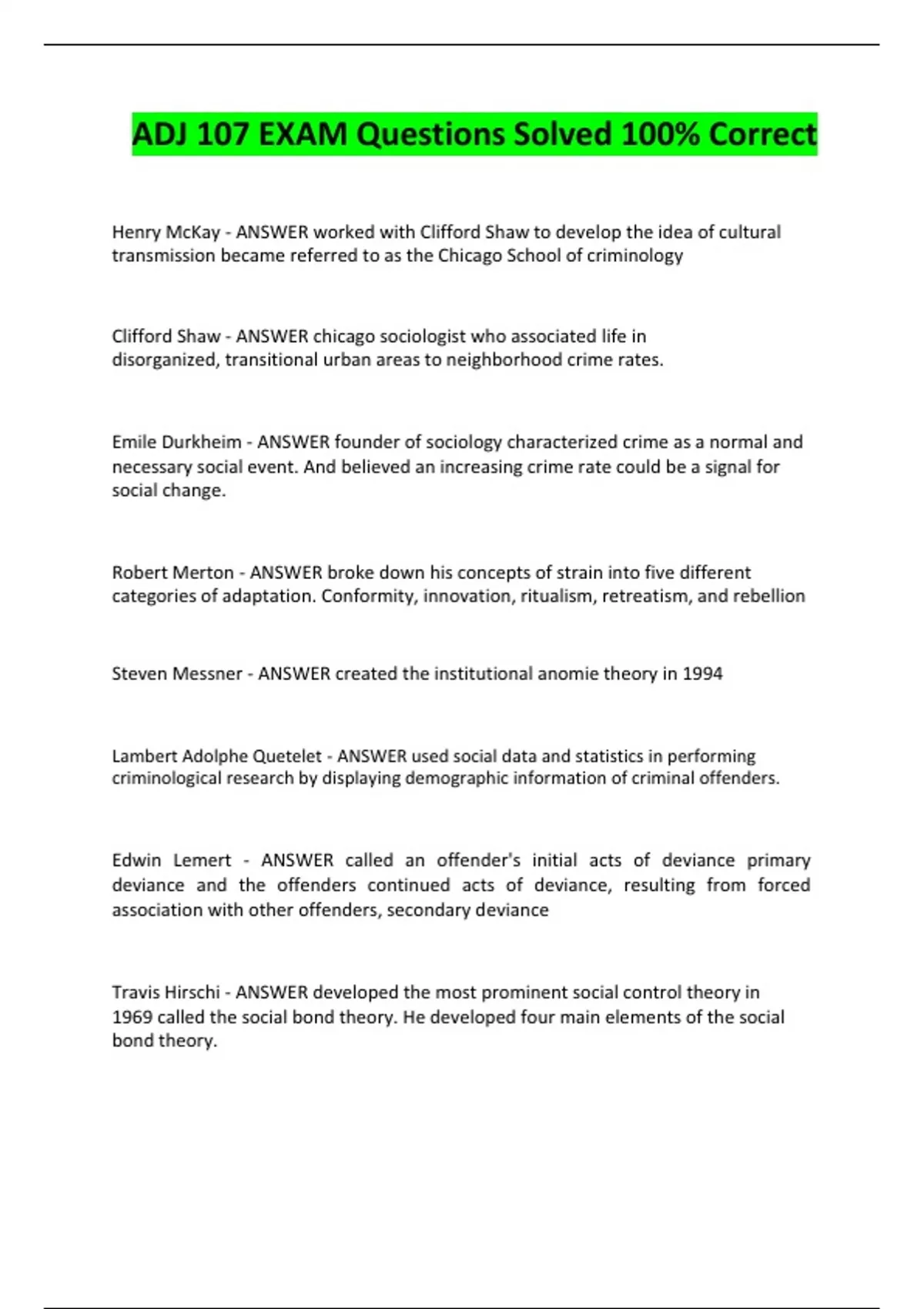 Travis Hirschi - ANSWER developed the most prominent social control theory in