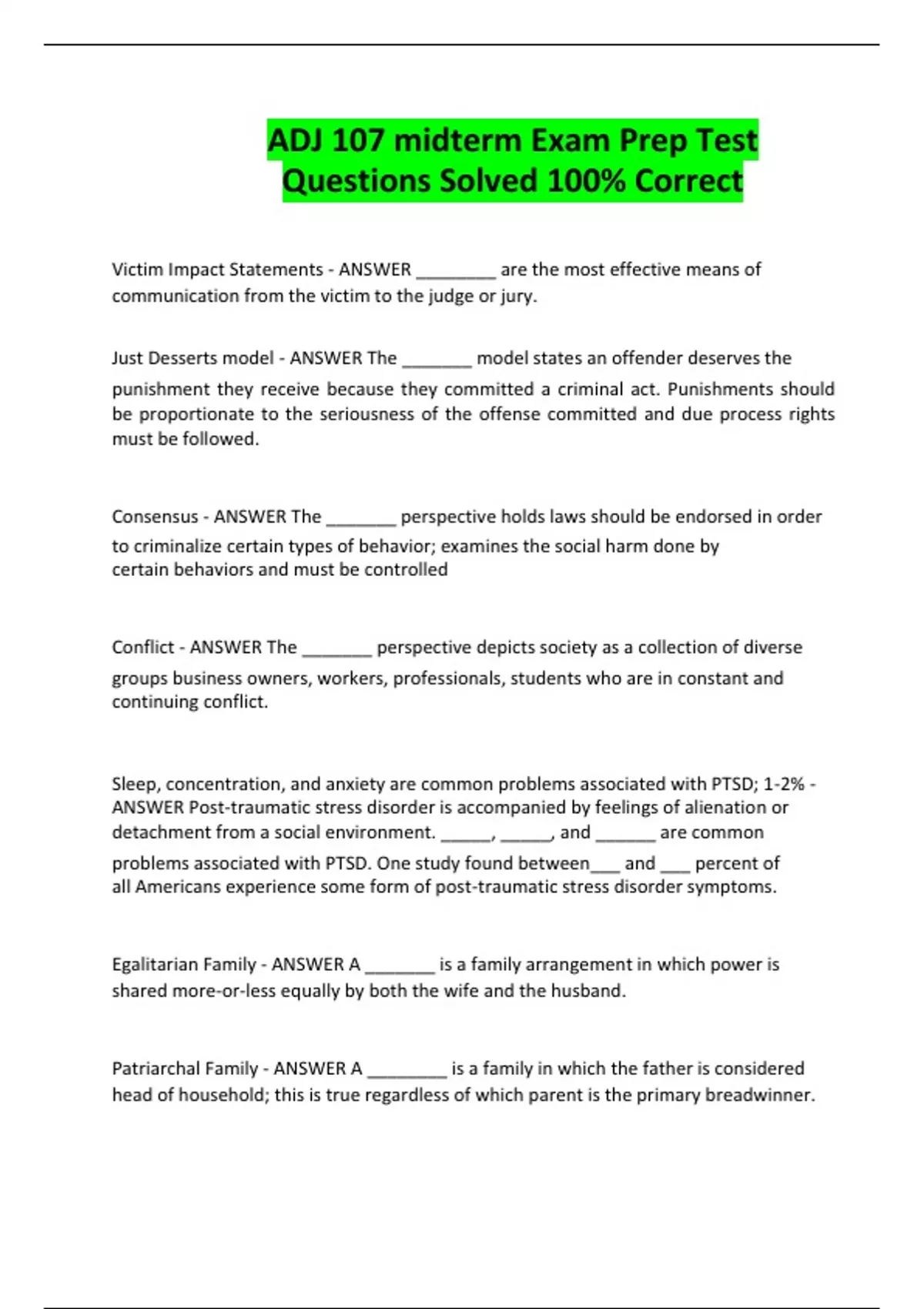 ADJ 107 midterm Exam Prep Test Questions Solved 100% Correct