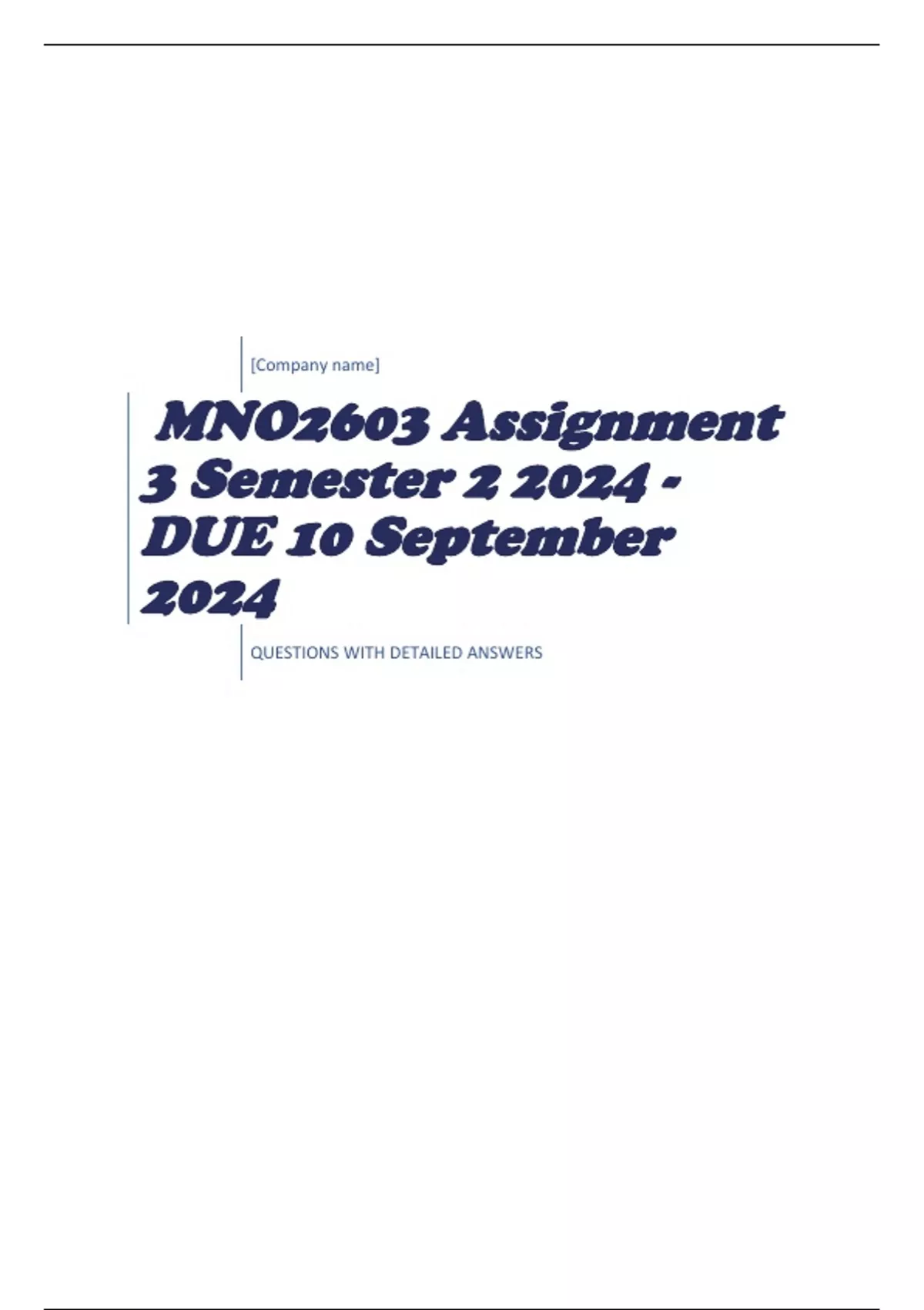 MNO2603 Assignment 3 Semester 2 2024 - DUE 10 September 2024 QUESTIONS WITH COMPLETE ANSWERS
