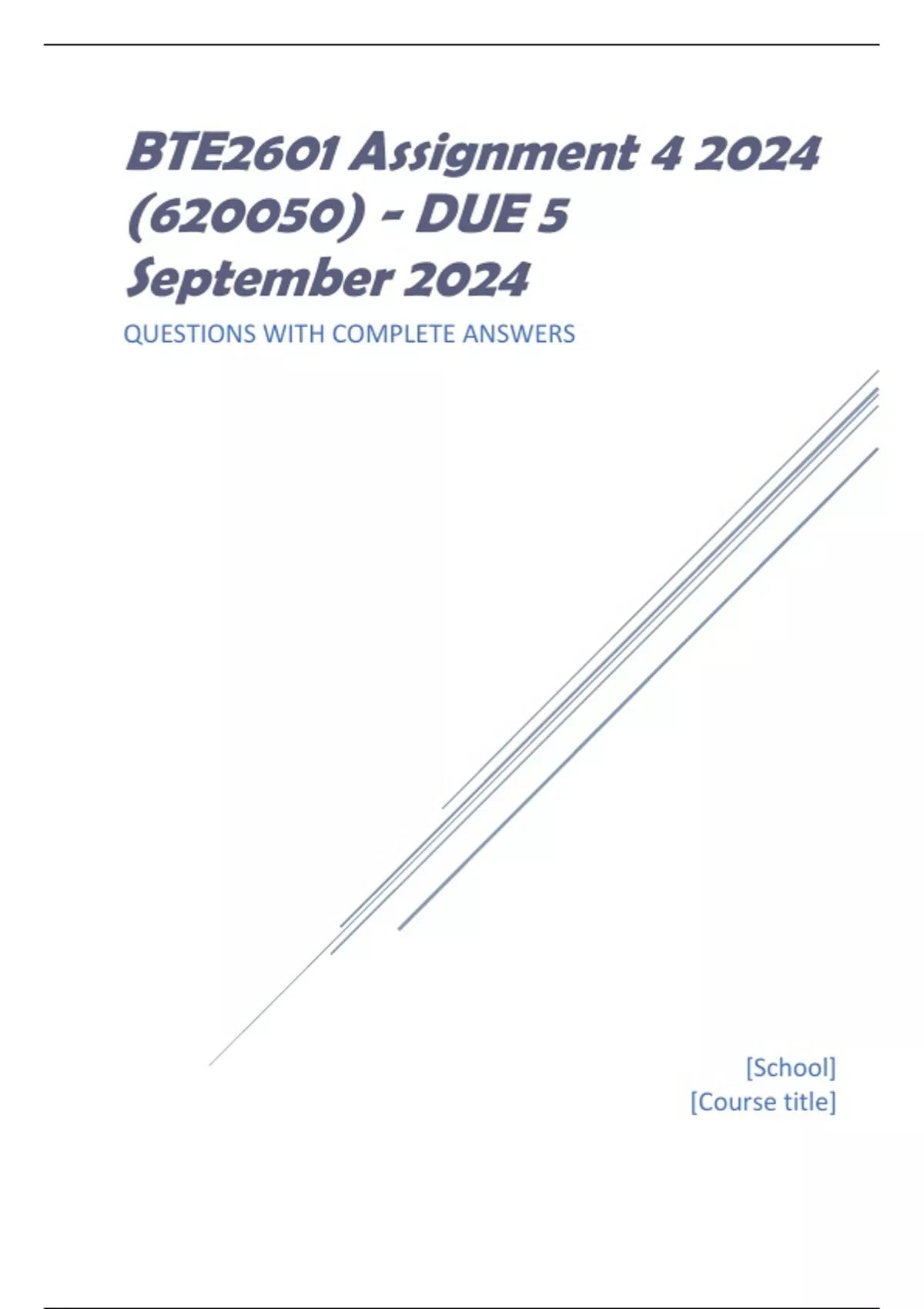 , BTE2601 Assignment 4 2024 (620050) - DUE 5 September 2024