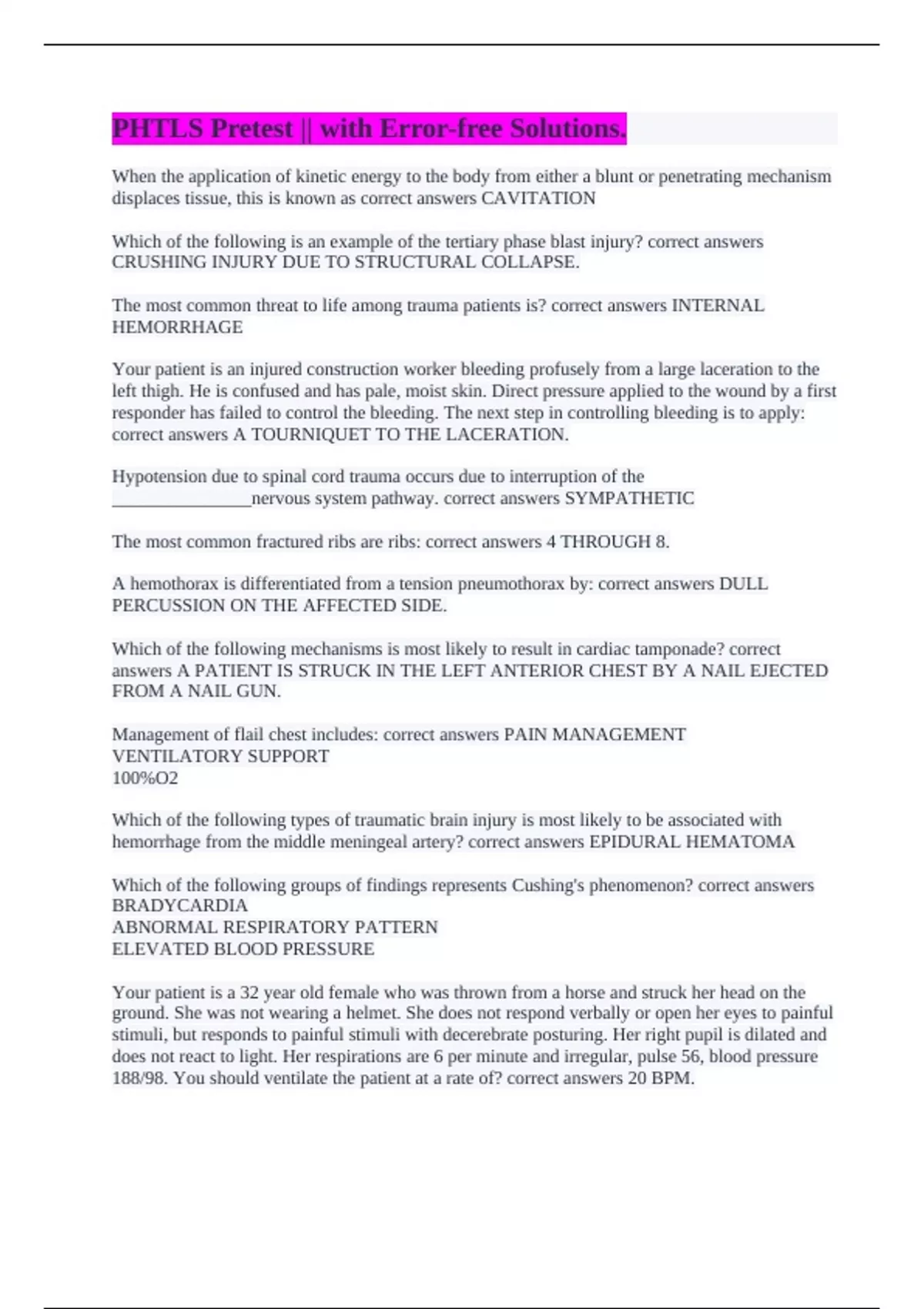 PHTLS Pretest || with Error-free Solutions.