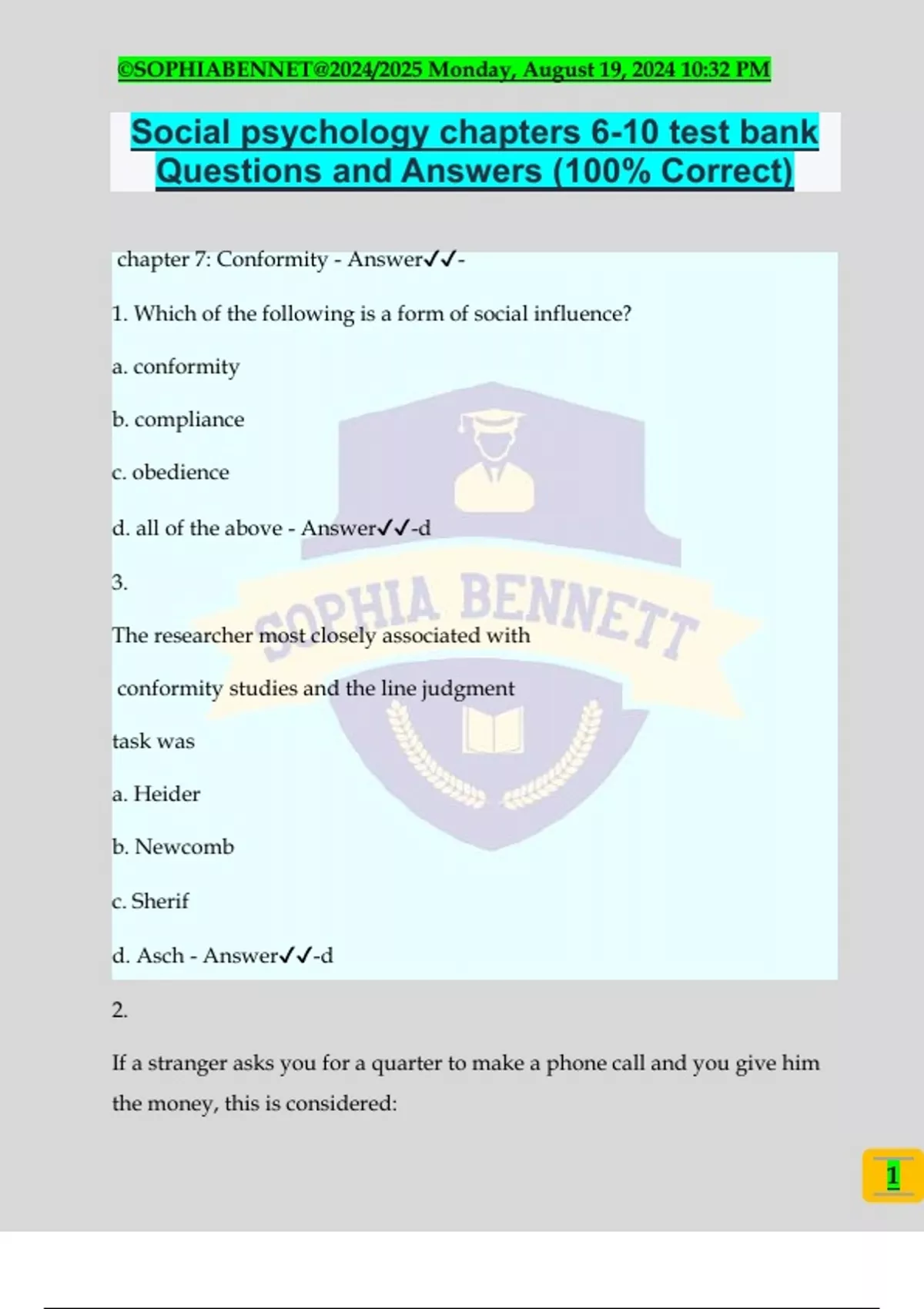 chapter 7: Conformity - Answer✔️✔️-