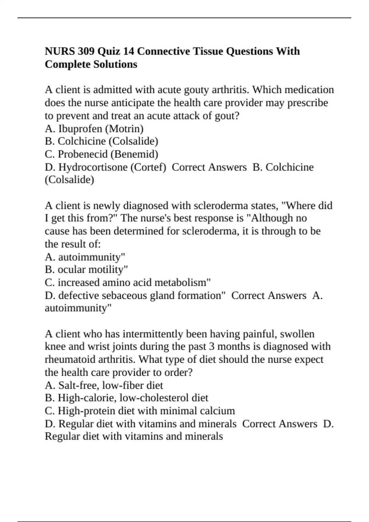 D. Hydrocortisone (Cortef) Correct Answers B. Colchicine
