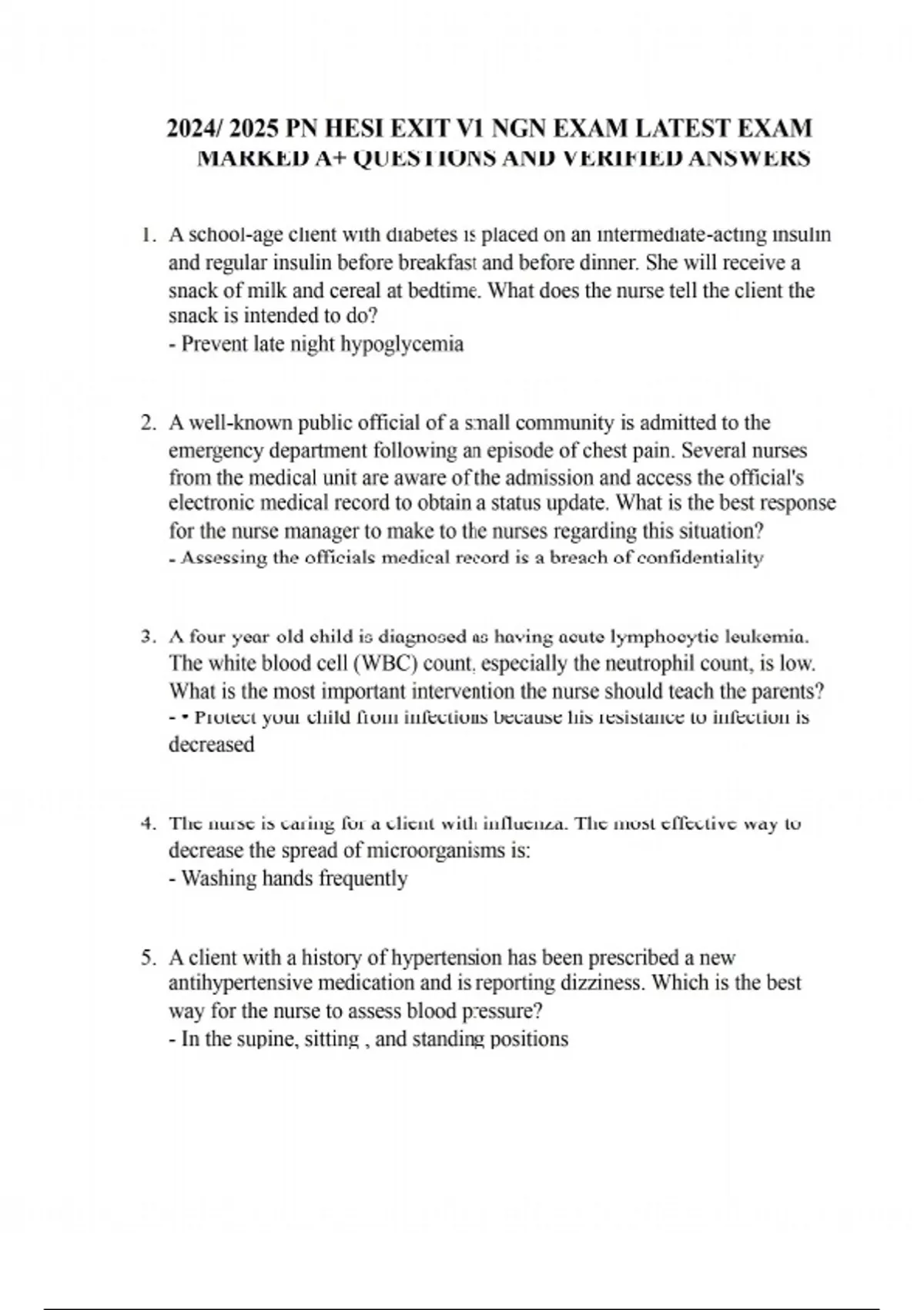 2024/ 2025 PN HESI EXIT V1 NGN EXAM LATEST EXAM MARKED A+ QUESTIONS AND VERIFIED ANSWERS