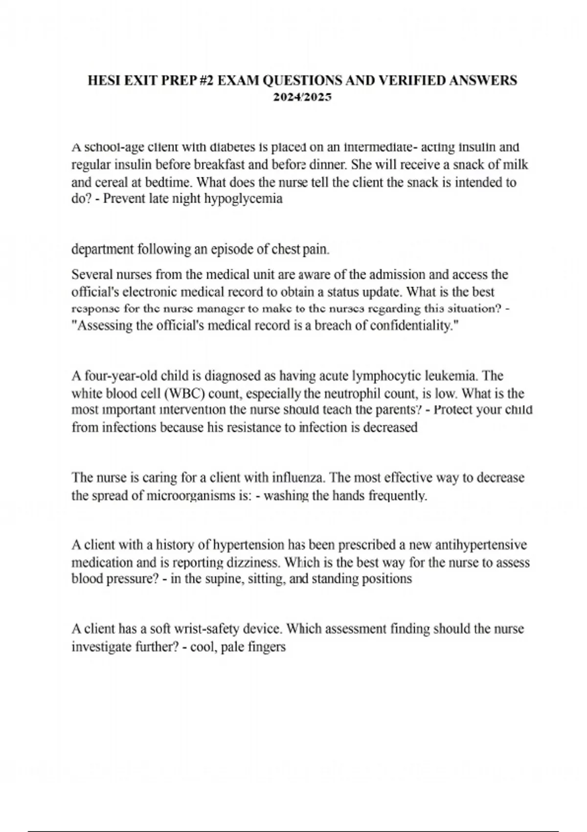 HESI EXIT PREP #2 EXAM QUESTIONS AND VERIFIED ANSWERS 2024/2025