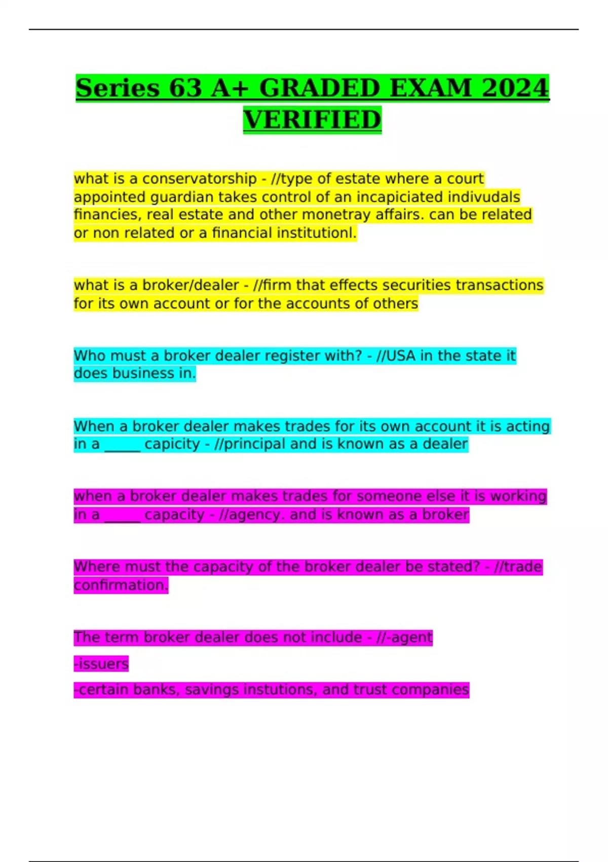 Series 63 A+ GRADED EXAM 2024