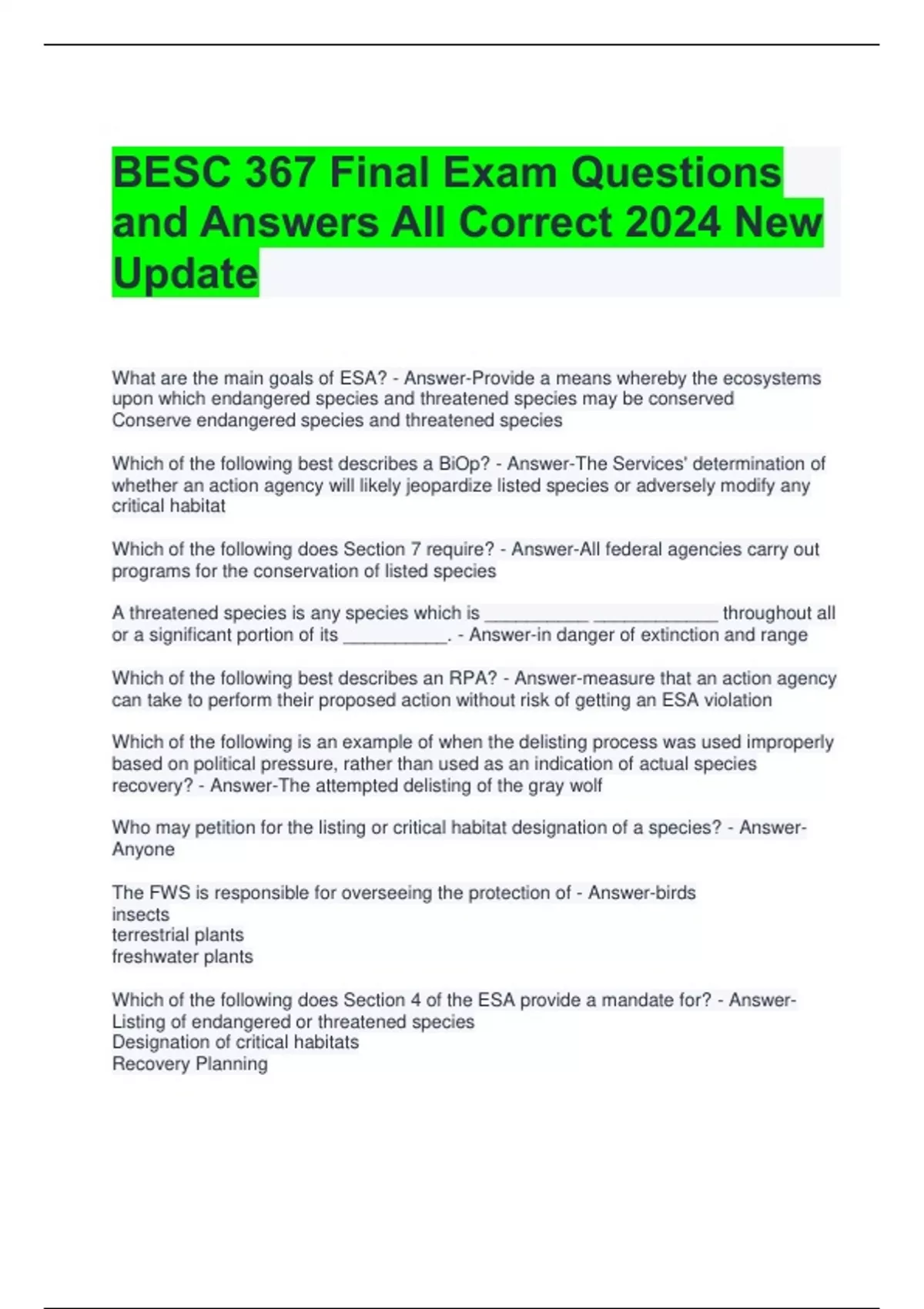 Which of the following does Section 9 of the ESA provide a mandate for? - Answer-That