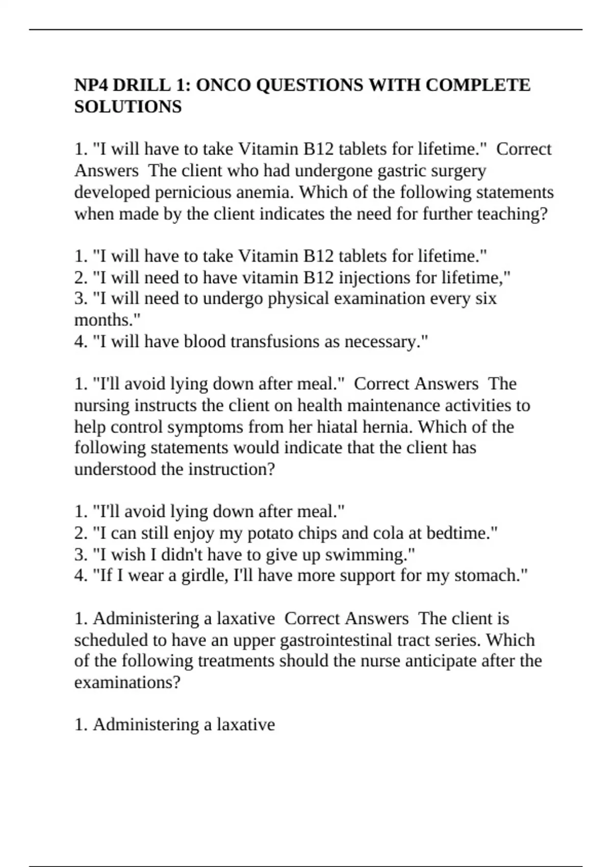 NP4 DRILL 1: ONCO QUESTIONS WITH COMPLETE SOLUTIONS