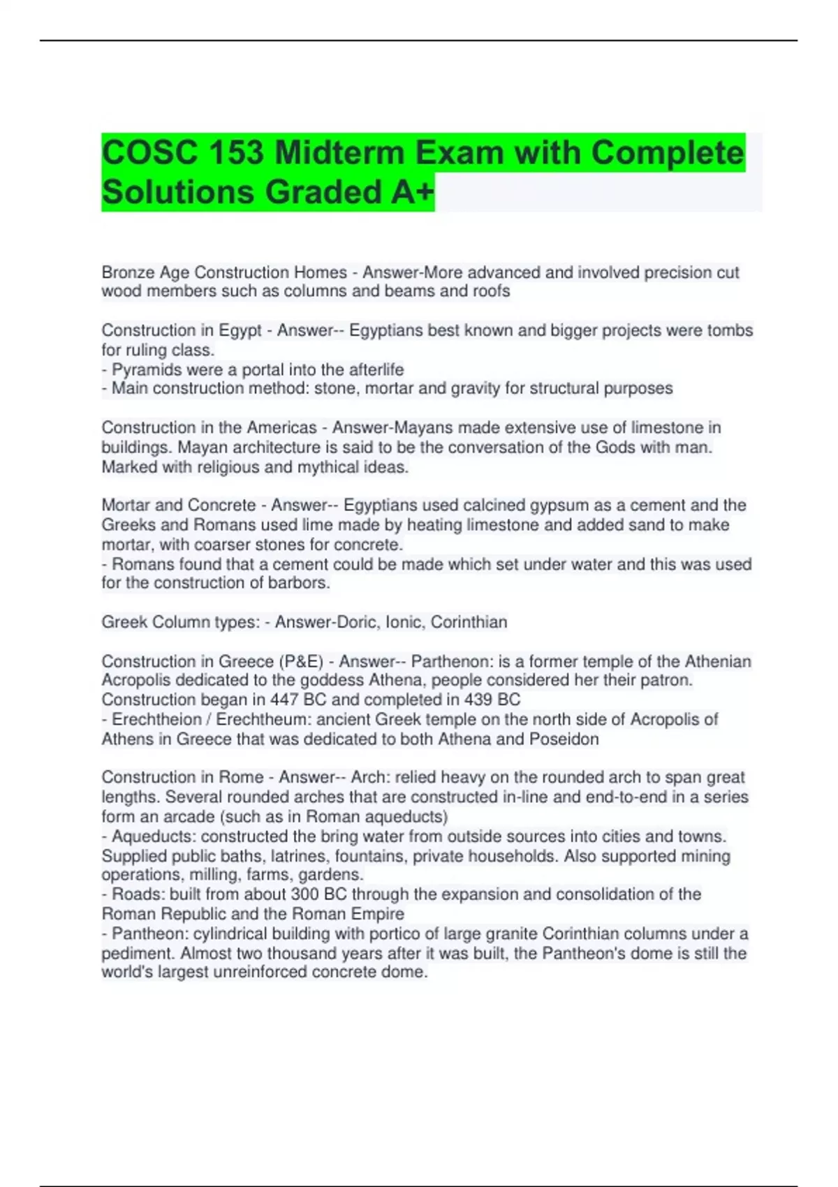 Construction in Greece (P&E) - Answer-- Parthenon: is a former temple of the Athenian