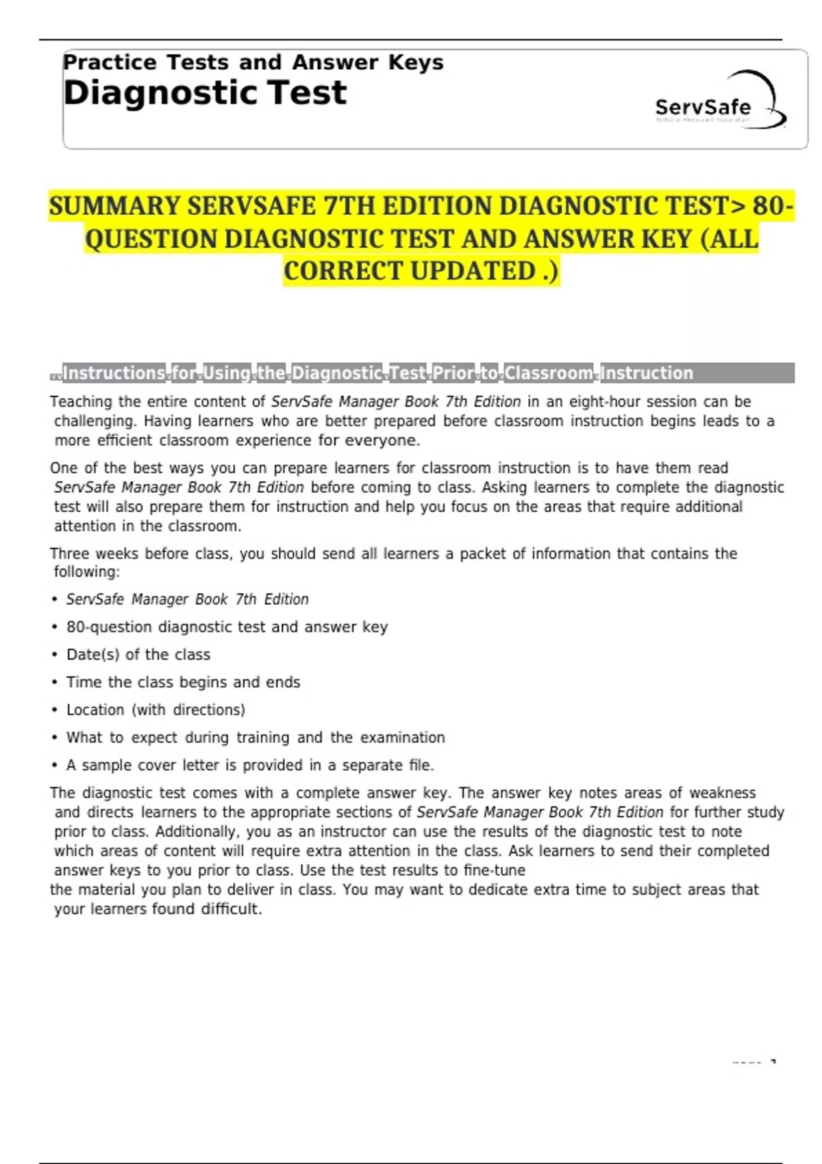 SUMMARY SERVSAFE 7TH EDITION DIAGNOSTIC TEST> 80-