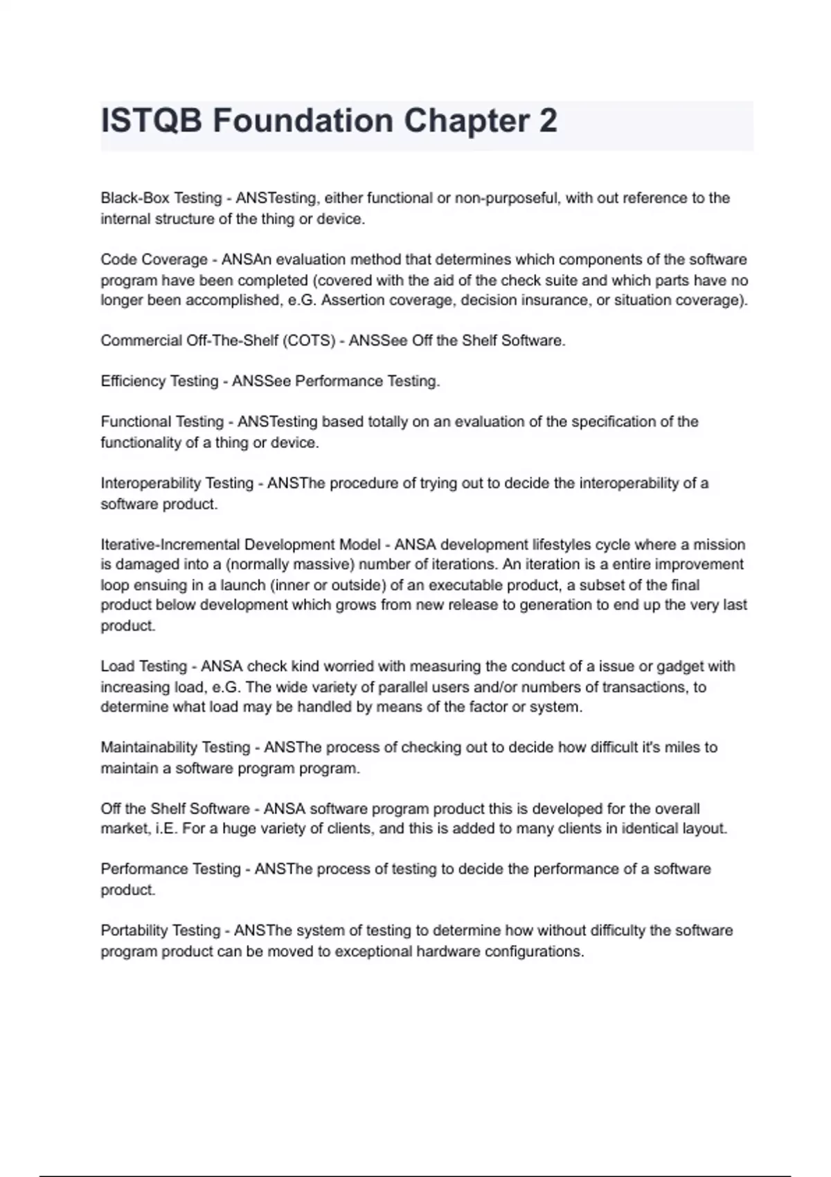ISTQB Foundation Chapter 2 questions and answers graded A+ 2024/2025