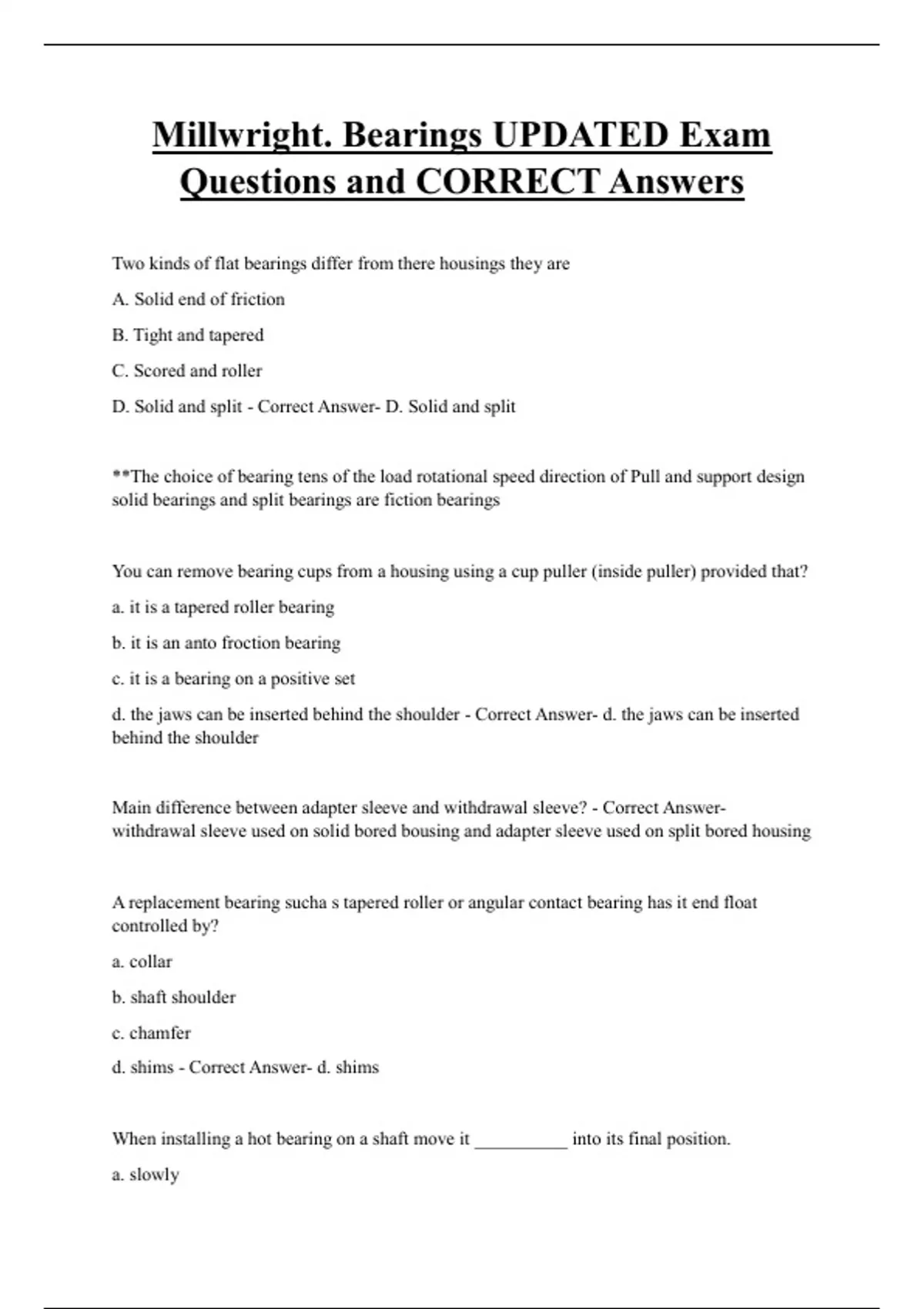 d. mount a bearing anywhere on a standard shaft - Correct Answer- d. mount a bearing