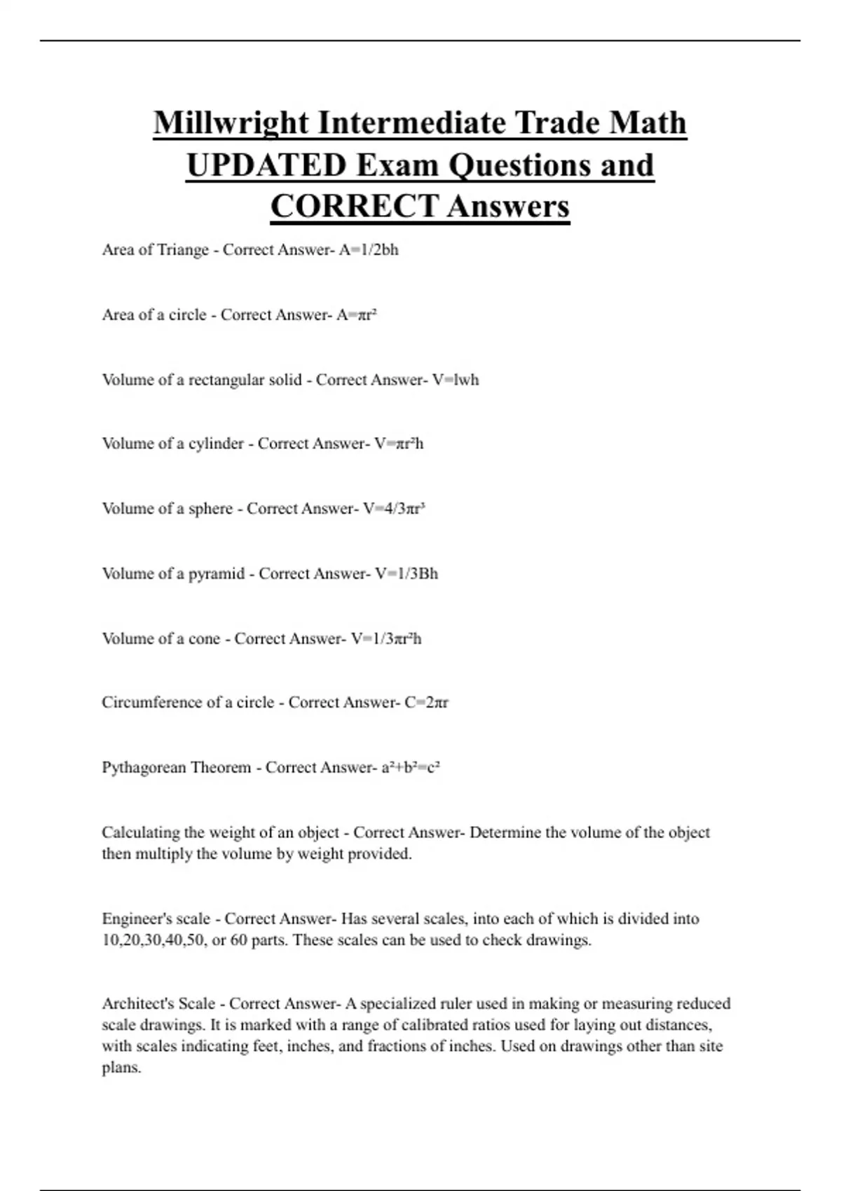 Area of Triange - Correct Answer- A=1/2bh