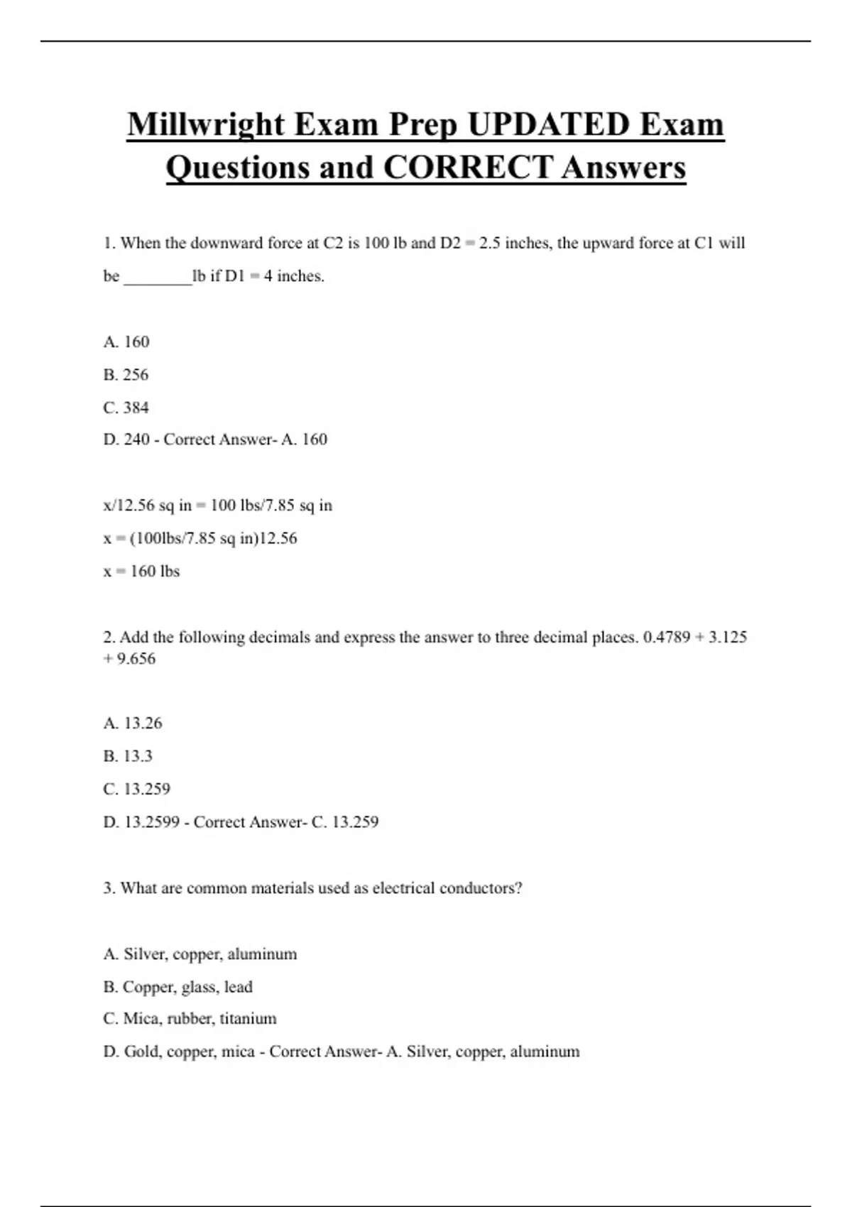 Questions and CORRECT Answers