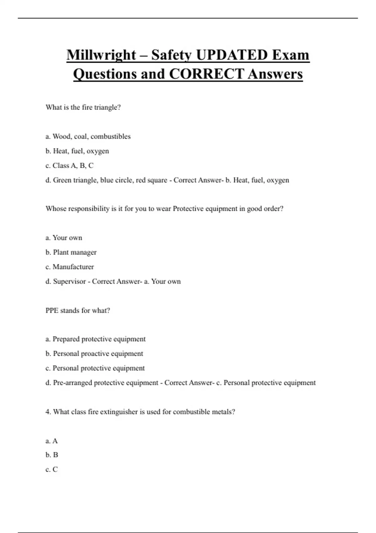 d. Pre-arranged protective equipment - Correct Answer- c. Personal protective equipment