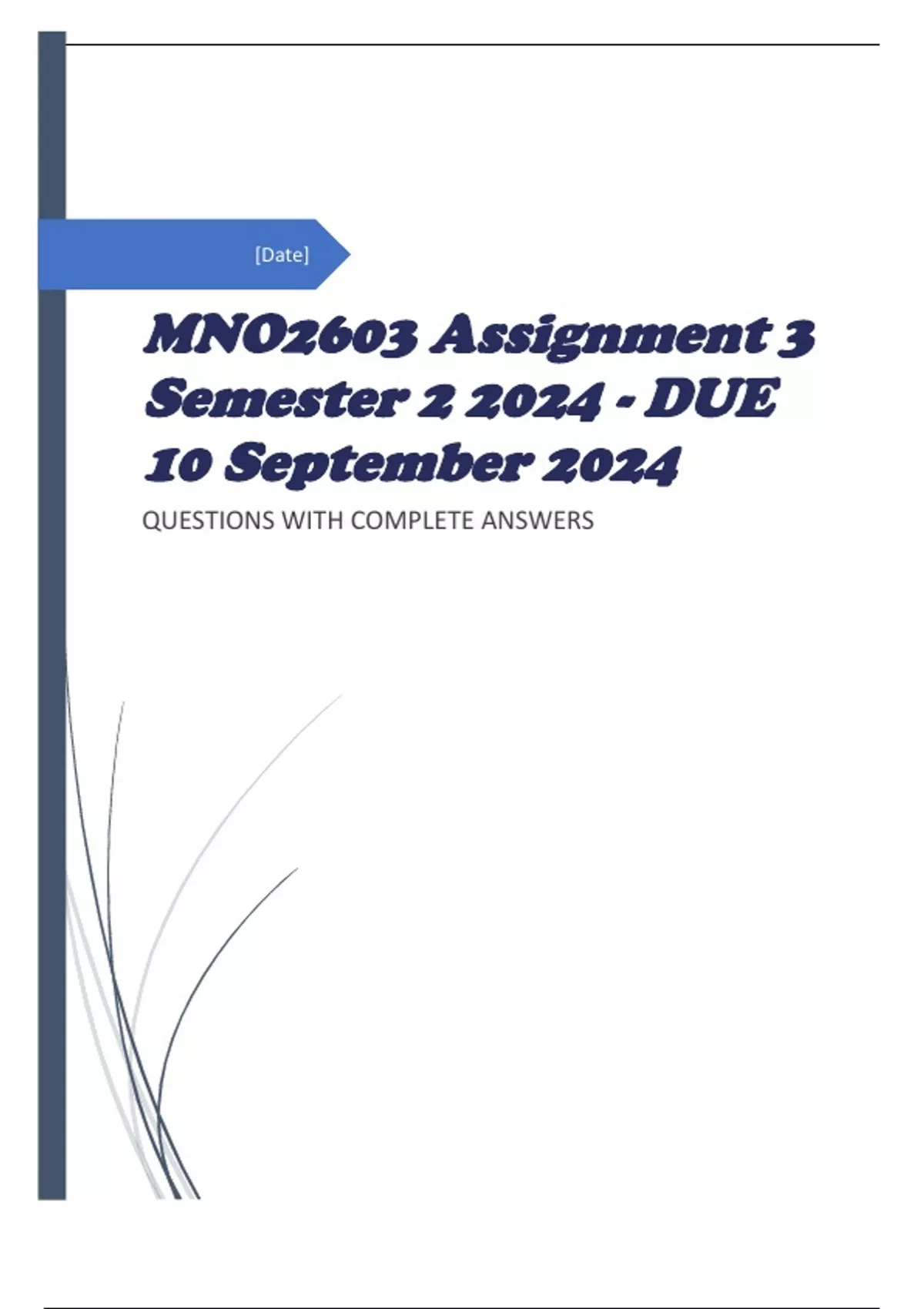 MNO2603 Assignment 3 Semester 2 2024 - DUE 10 September 2024