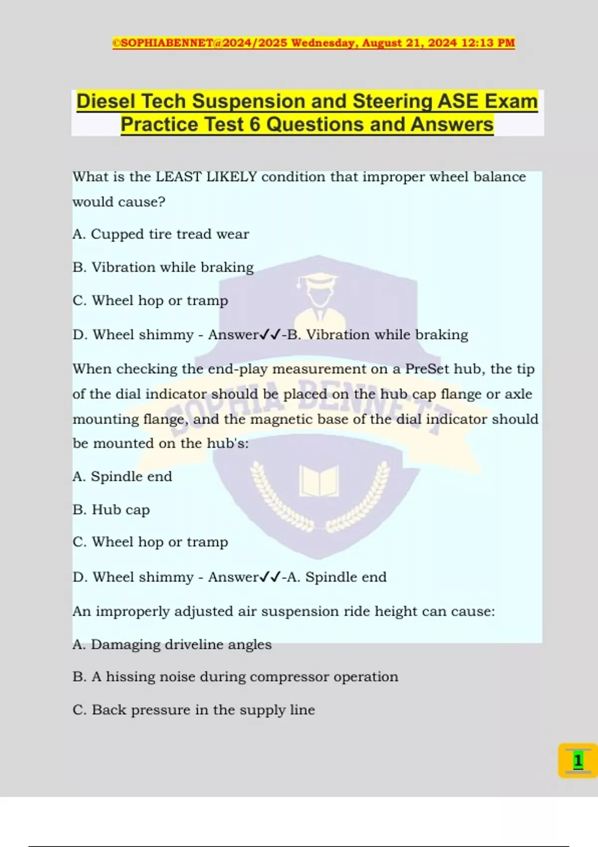 Diesel Tech Suspension and Steering ASE Exam