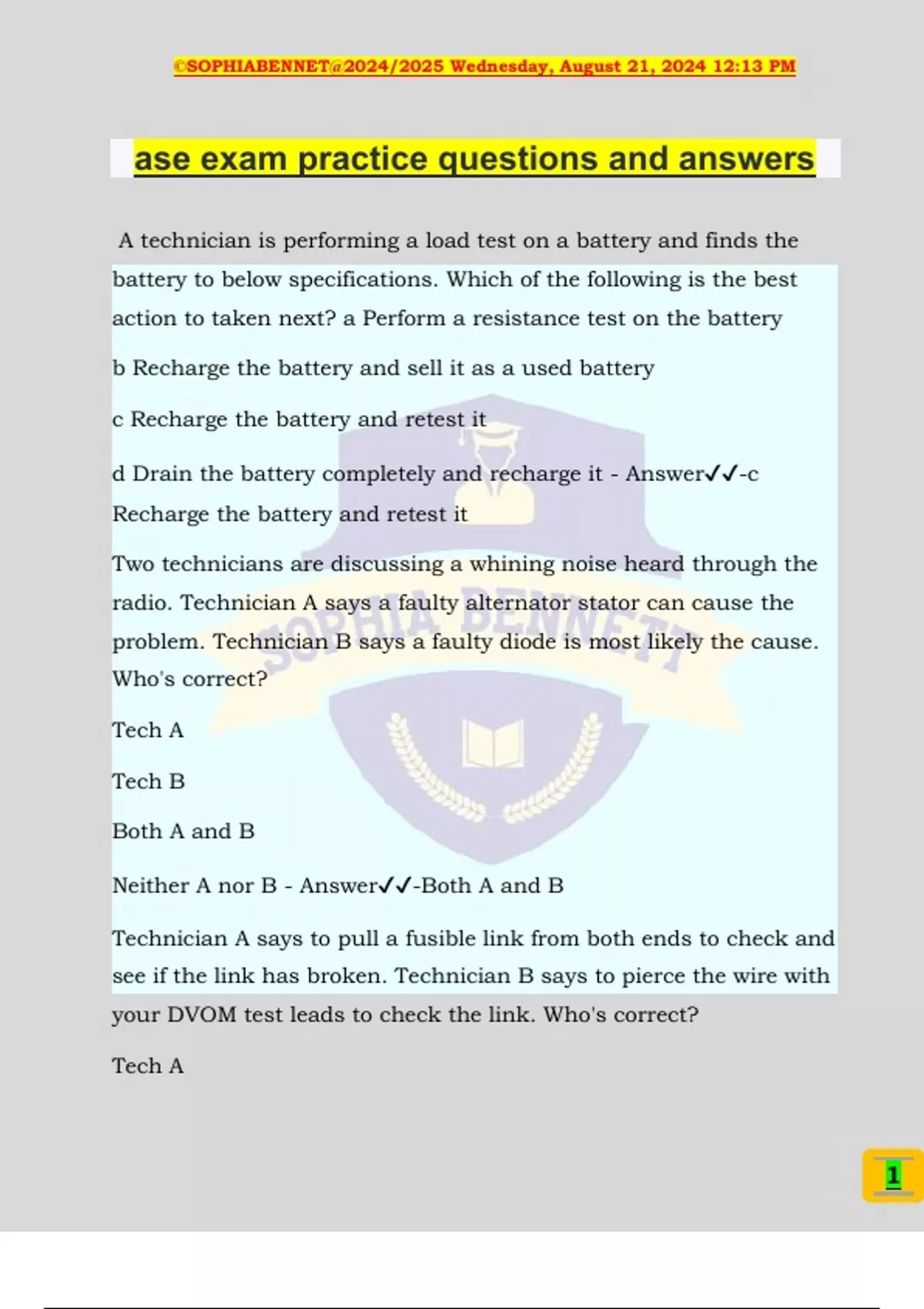 ase exam practice questions and answers