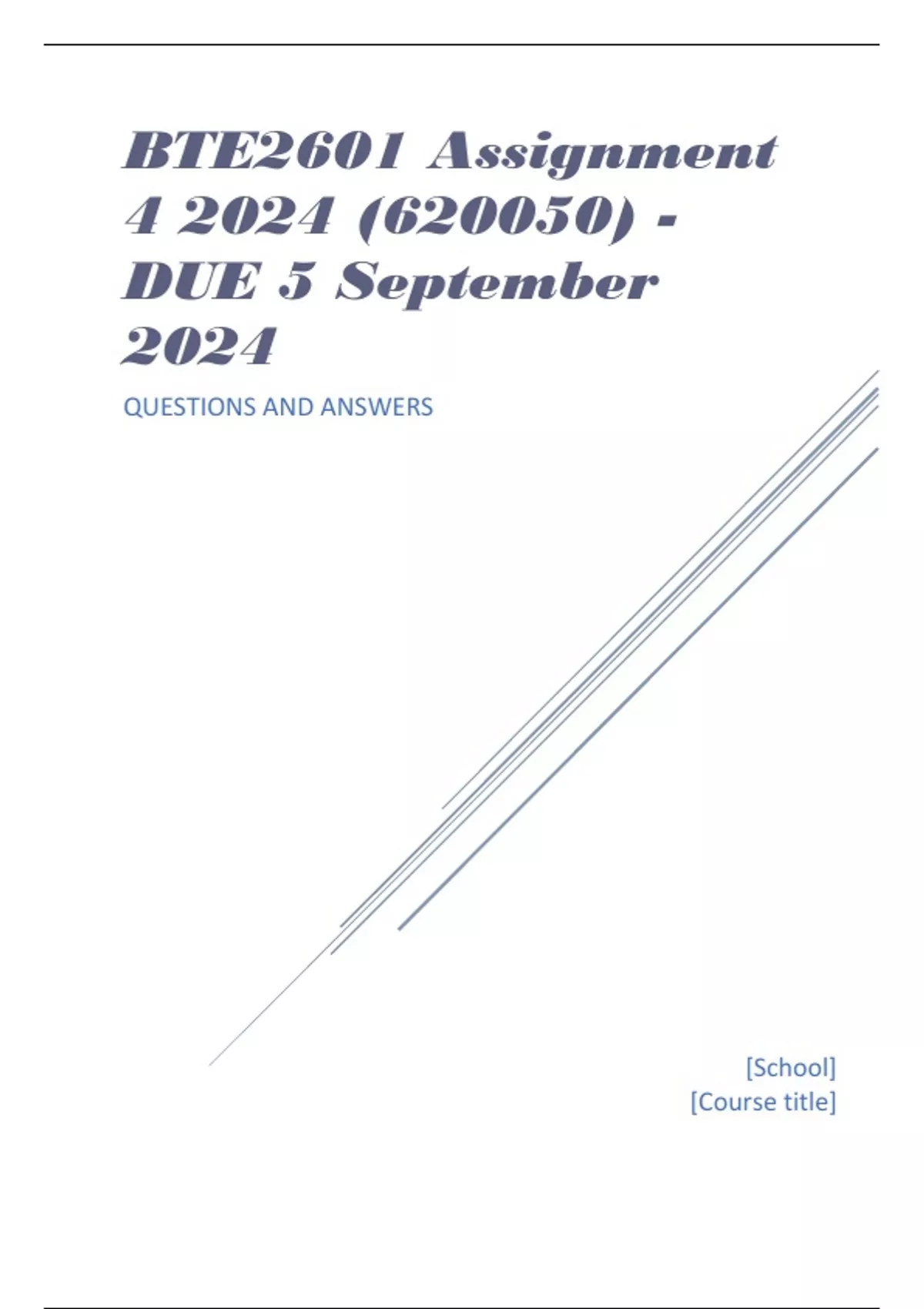, BTE2601 Assignment 4 2024 (620050) - DUE 5 September 2024