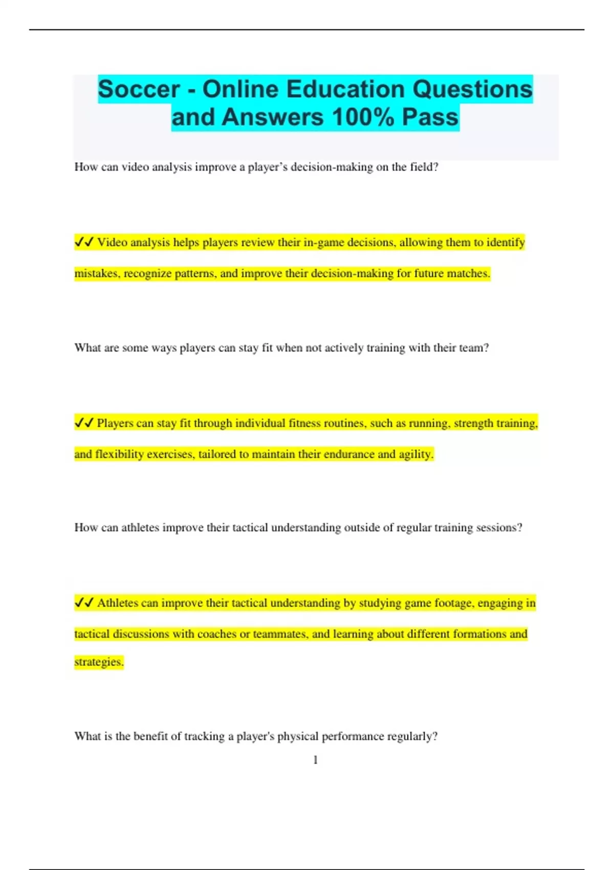 ✔✔ Athletes can improve their tactical understanding by studying game footage, engaging in